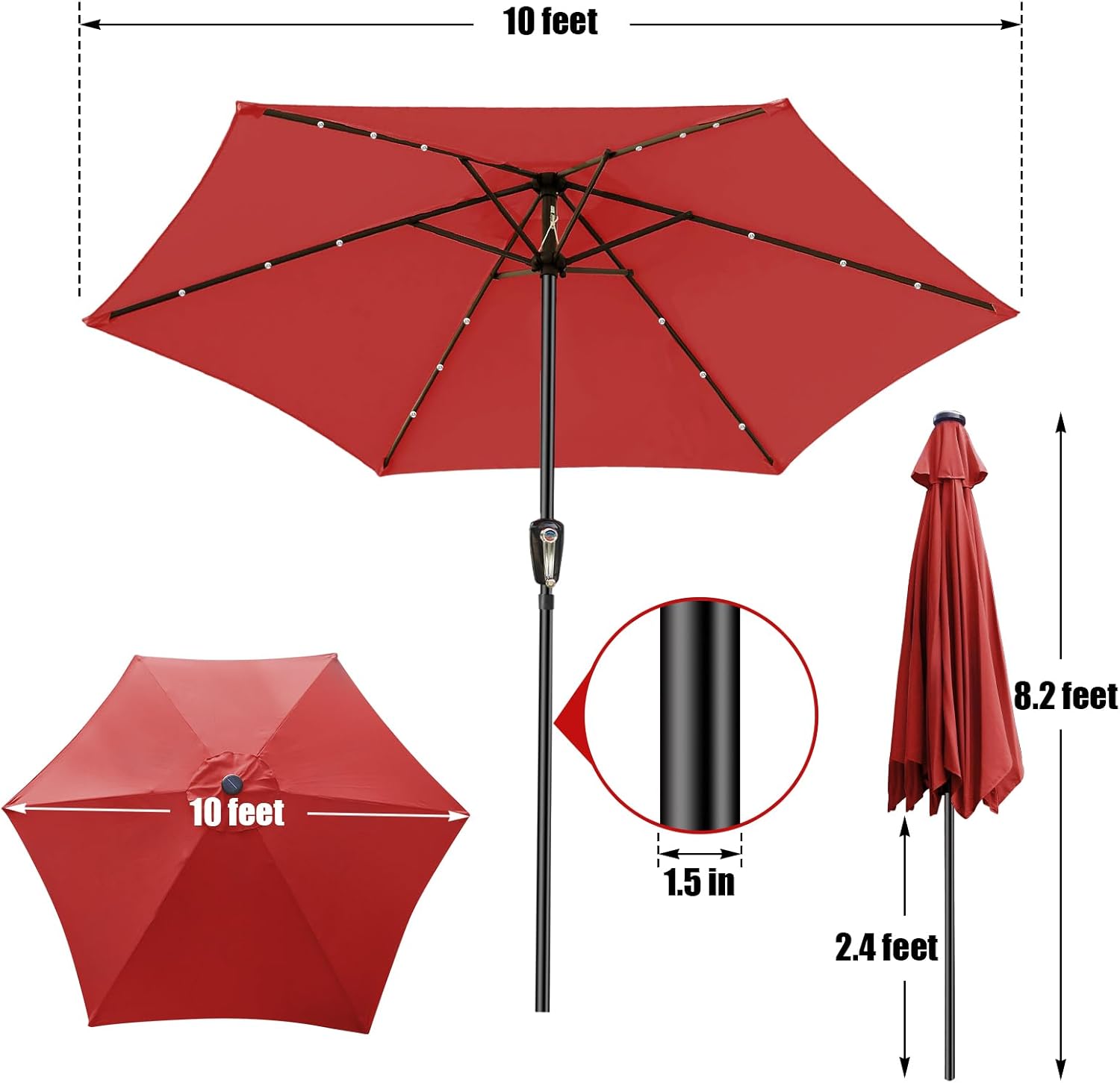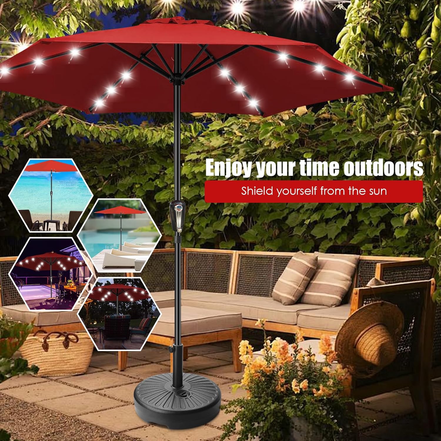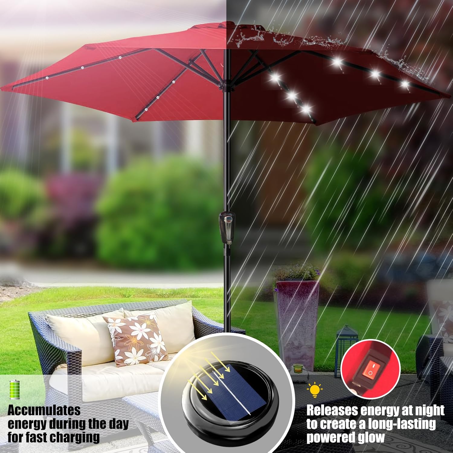 HEVOL Garden Parasol Umbrella, Patio Parasol Outdoor with 18 LED Lights, Patios Table Umbrellas with UV Protection, Waterproof Parasols for Yard, Deck, Beach, Pool, Red