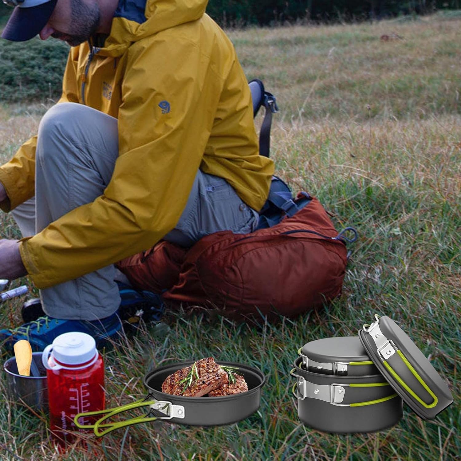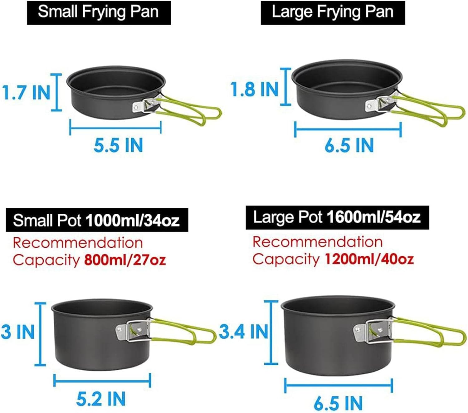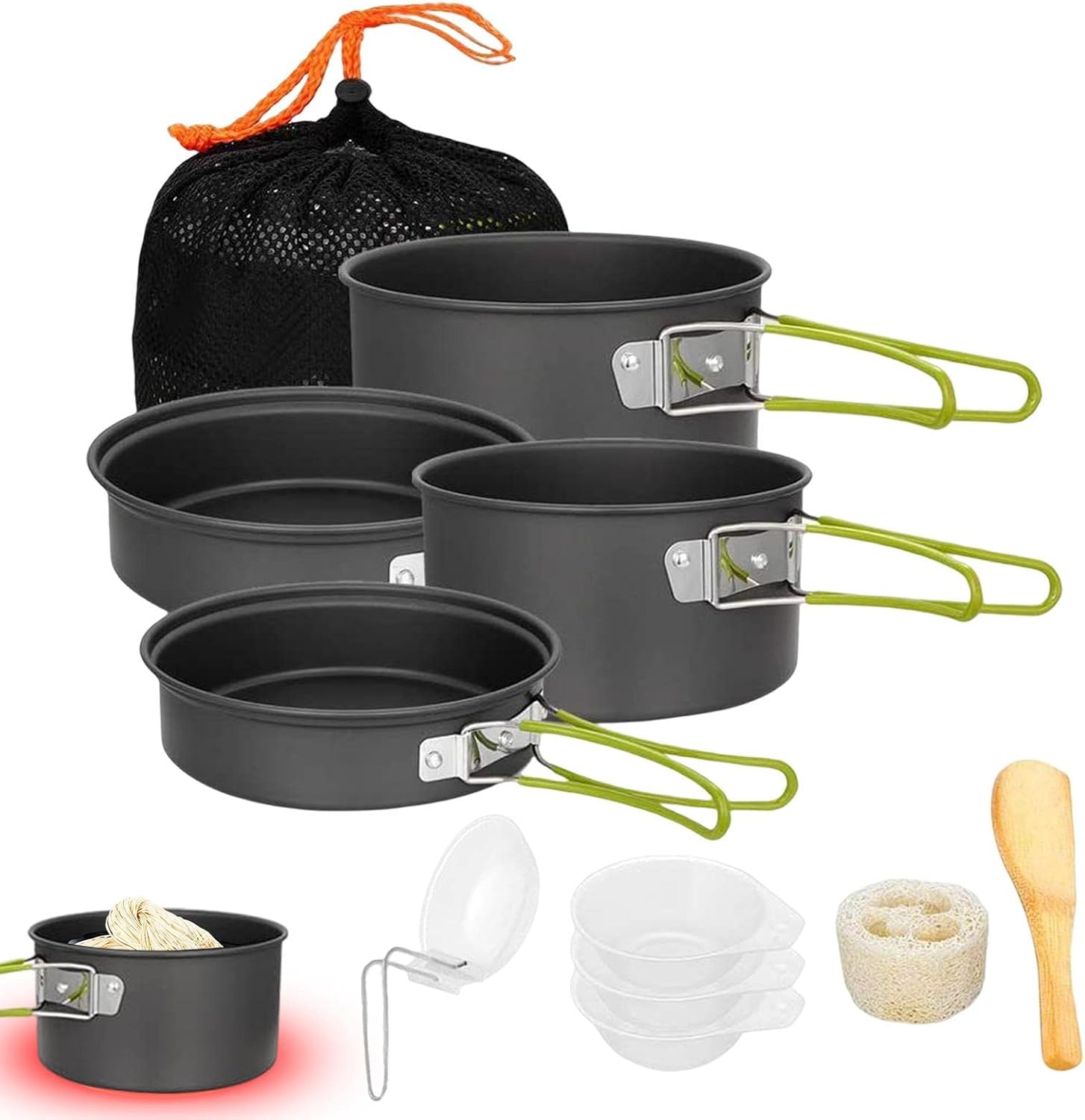 HEYCE Open Fire Cookware,Backpacking Cooking Pot and Pan – Outdoor Portable Cookware Mess Kit Camping Hiking Picnic, Campfire Cooking Equipment
