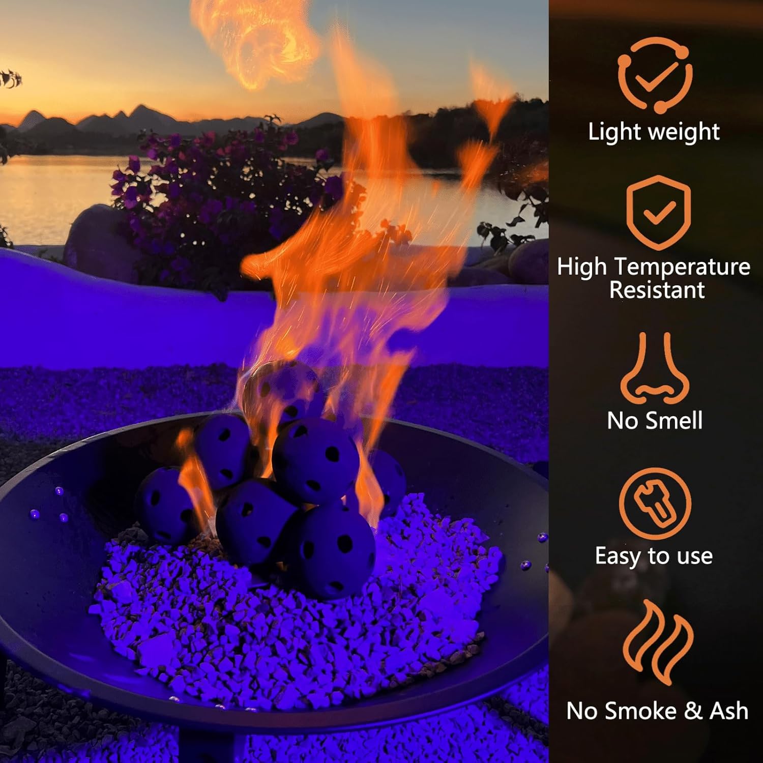 Style: Hollow Black Fire Balls, Fire come through the holes,these heat resistant spheres can withstand temperatures up to 800-1000°C