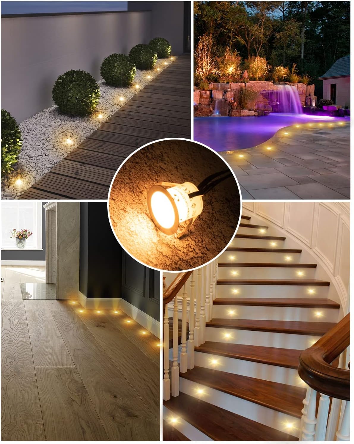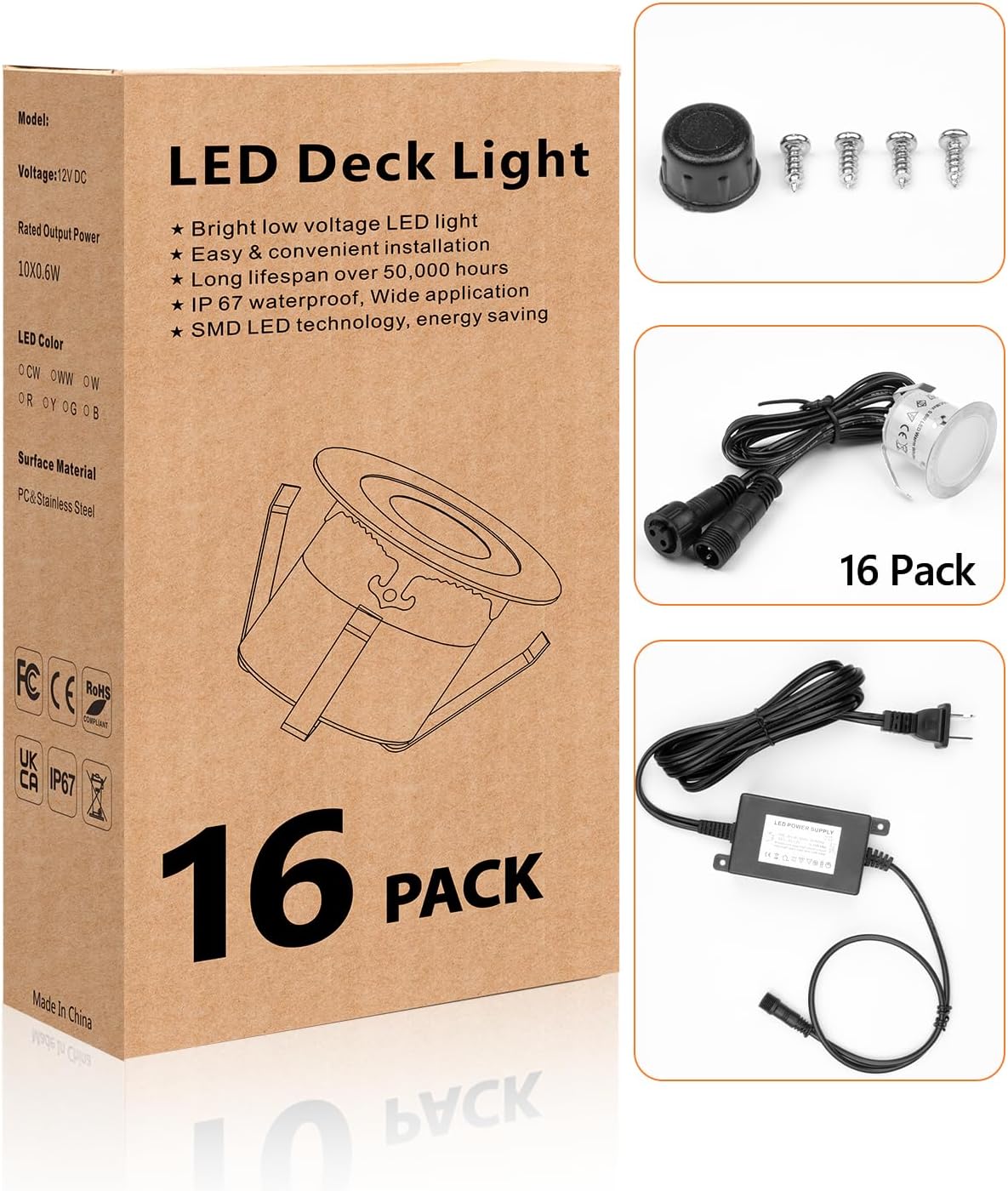 【Safety, Energy Saving and long life】Our deck lights kits have been certified by CE, FCC and RoHS to ensure product quality and safety. Equipped with a stable and safe 12V power adapter, safe and energy-saving, with a walking pressure of 220 pounds, and a service life of more than 50,000 hours.