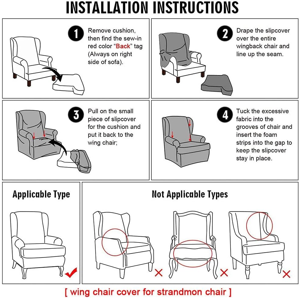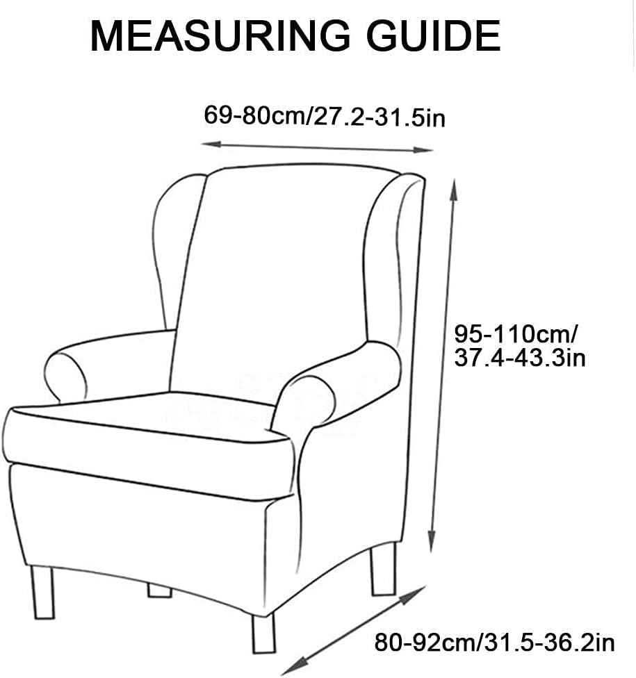 【Perfect Fit】Best choice for both T cushion and box cushion styles. uitable for wingchair that are 27.2-31.5 inches long, 37.4-43.3 inches high and 31.5-36.2 inches wide. Please measure your wing chair in advance and compare it to our size chart.