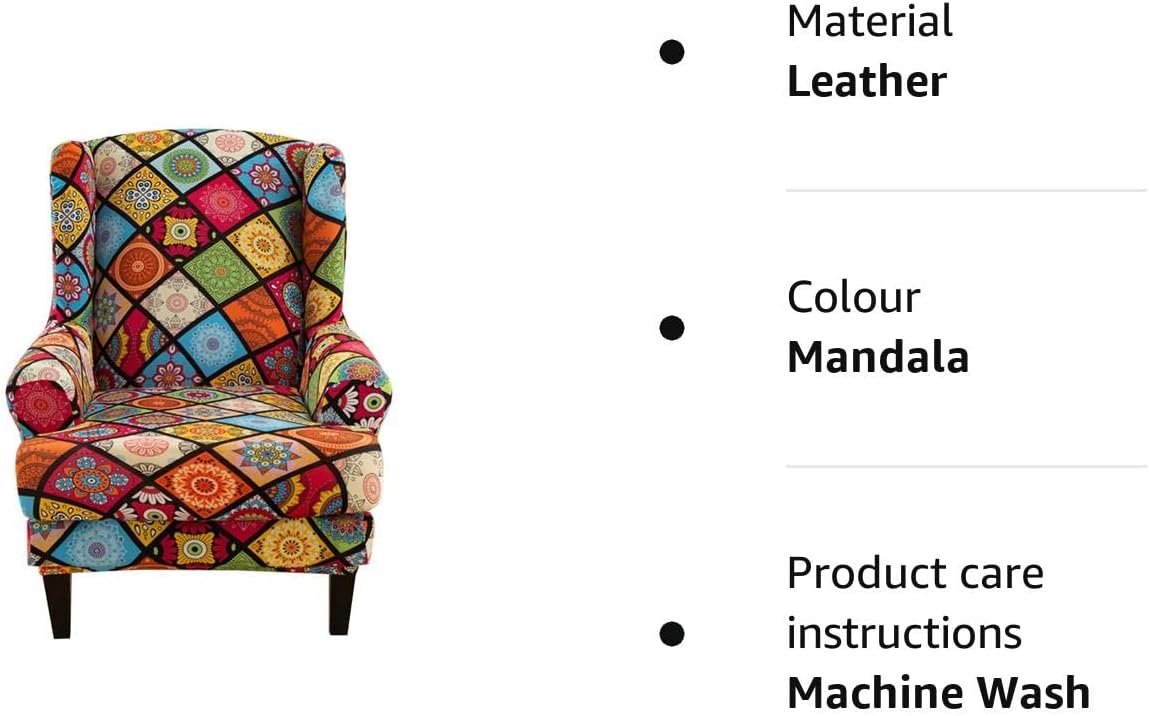 Highdi Wingback Chair Covers 2 Piece Stretch Wing Chair Slipcover, Washable Spandex Fabric Sofa Cover Furniture Protector for Armchair Chairs Living Room Bedroom Hotel (mandala)