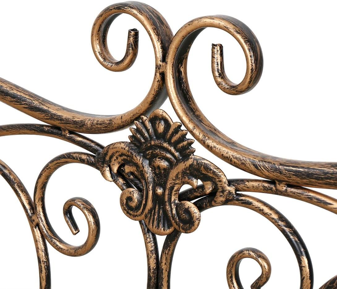 HLC Metal Antique Garden Benches Clearance Outdoor wrought iron Bench 2 Seat with Decorative Cast Iron Backrest Iron Cast Aluminium Bench for Garden,Patio, Porch and Yard Max 250kg (Brown)