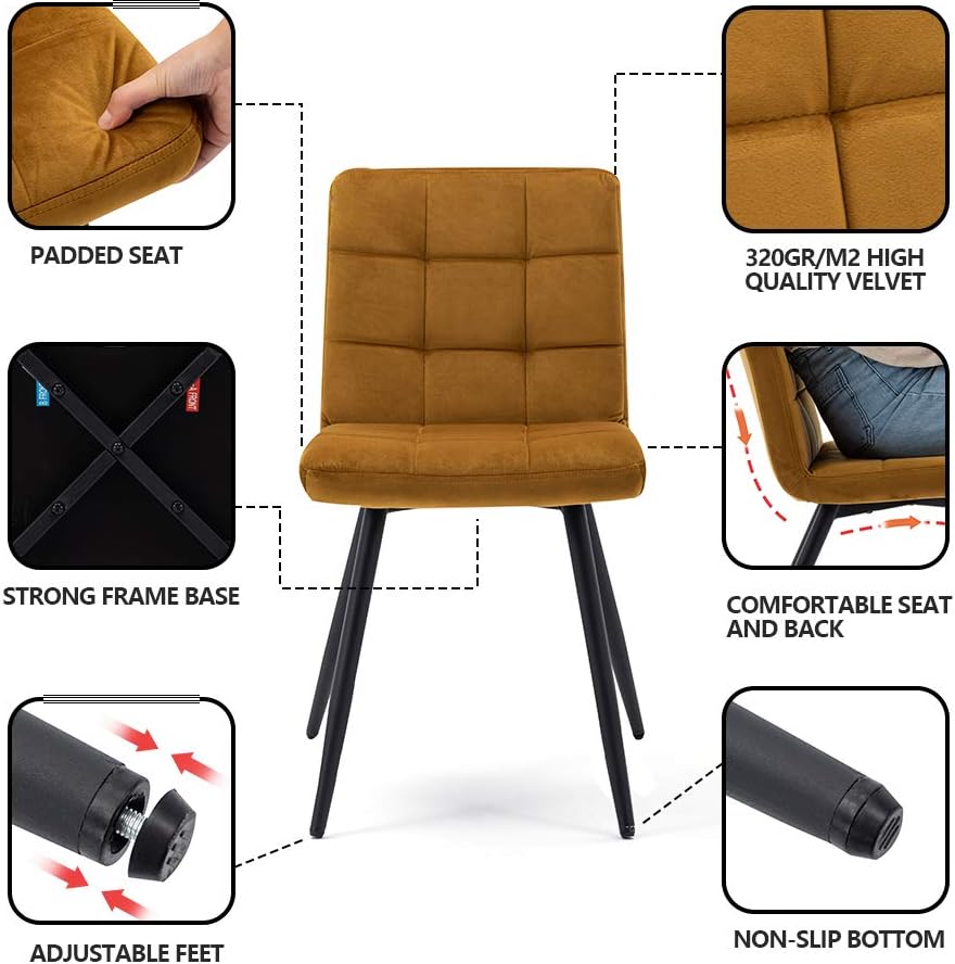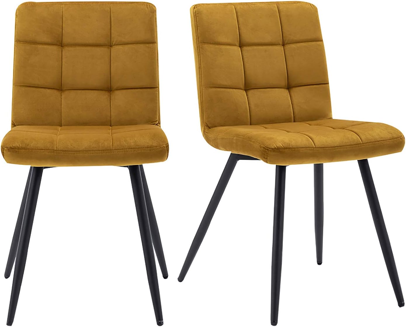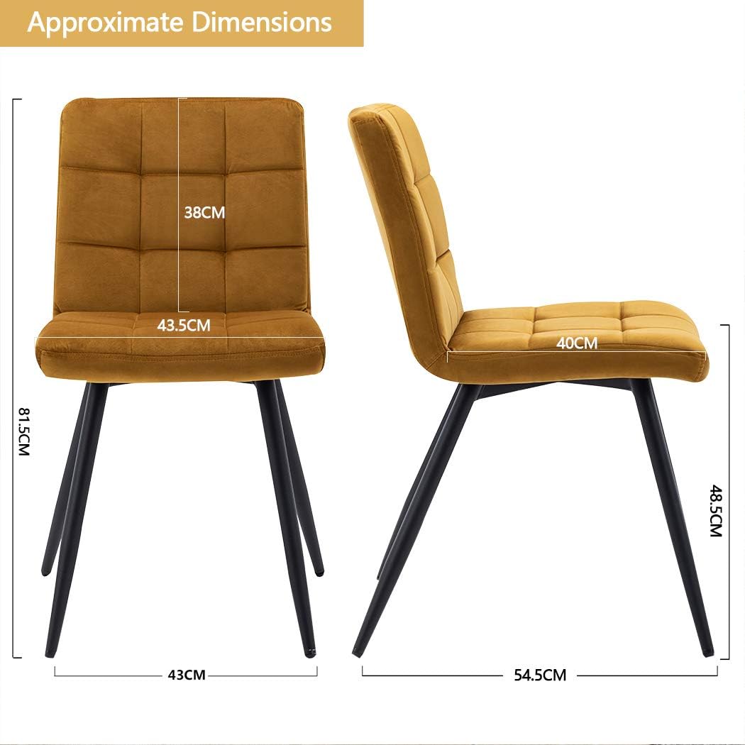 HNNHOME Set Of 2 x Cubana Velvet Upholstered Kitchen Dining Chair with Strong Black Metal Legs Living Room Bedroom Chair (Yellow, Velvet)