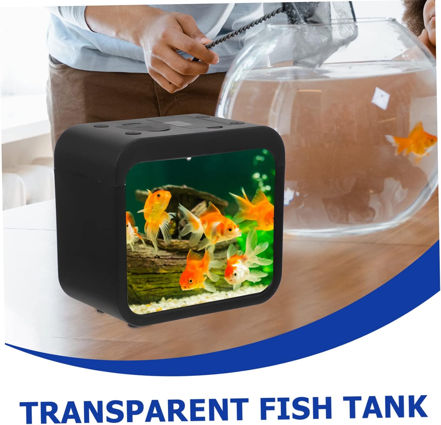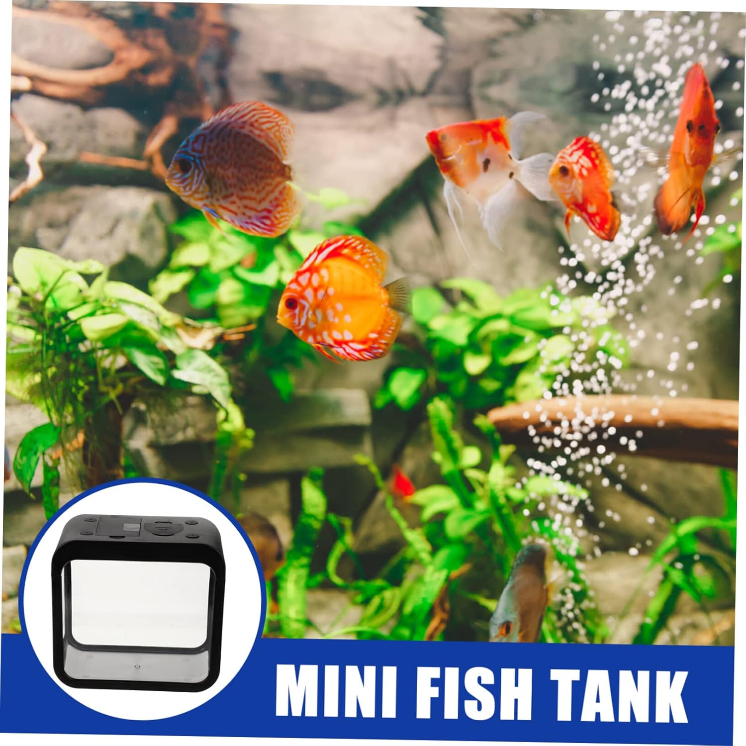 Hohopeti Small Aquarium Creative Aquarium Reptile Decor Goldfish Aquarium Lamp with Color Changing Light Mini Incubation Fish Tank Fish Box Small Black Plastic Child Miniature