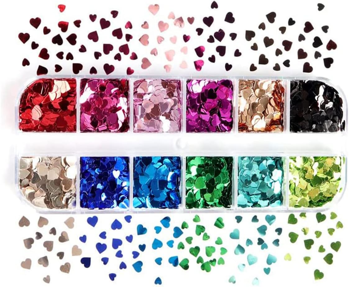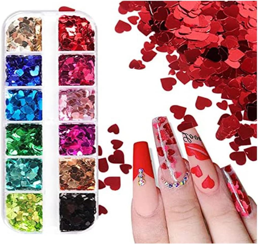 Holographic Heart Nail Art Sequins – Valentine’s Day Nail Art Glitters Heart Nail Glitter Sequins 3D Holographic Nail Art Supplies Accessories Sparkle Color Heart Love Design Nail Flakes Confetti