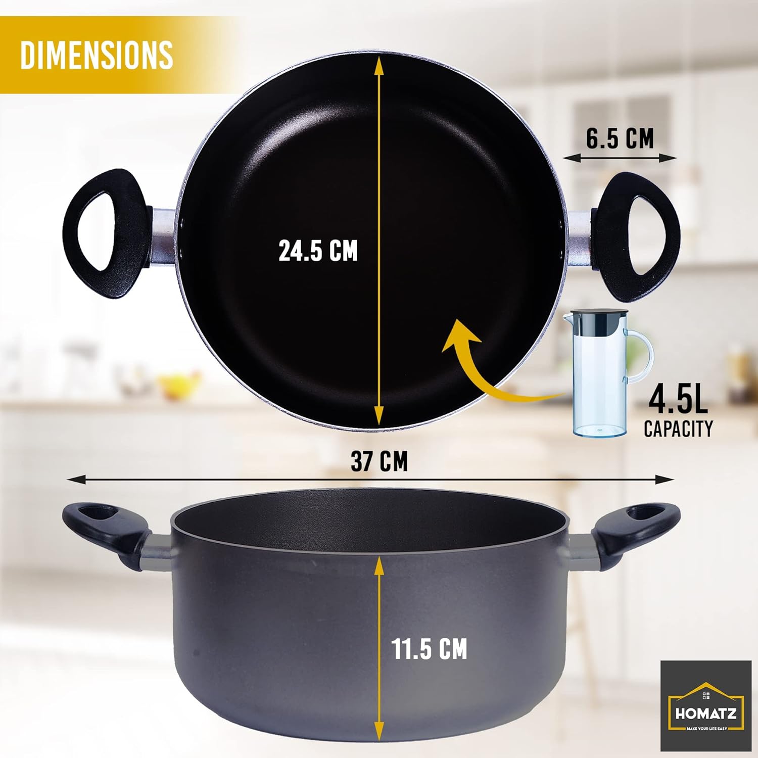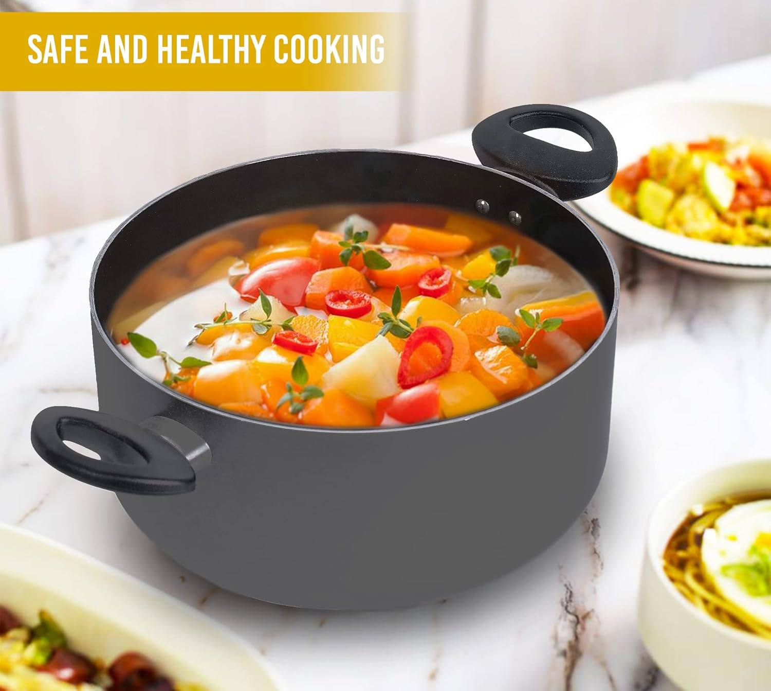 Effortless Cooking and Cleaning: The non-stick black interior of the Homatz Cooking Pot guarantees hassle-free food release and easy cleaning. Spend less time scrubbing and more time enjoying your culinary creations, whether they’re soups, stews, or sauces.