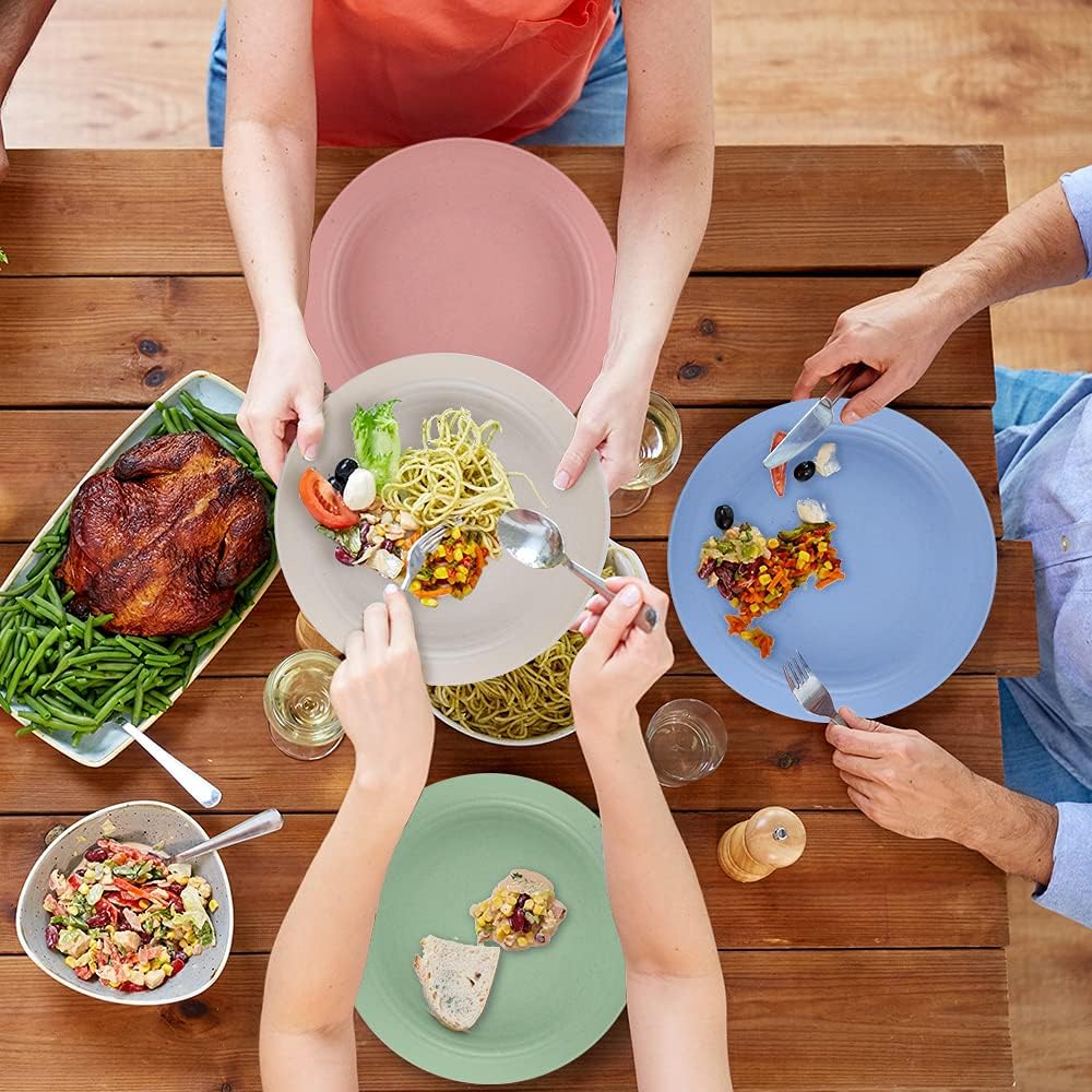 hombrima 8.8″ Family Dinner Plates, 4 Pack Unbreakable Plates Dishwasher and Microwave Safe, BPA Free, Green and Healthy for Toddler Kids Adults (8.8”)