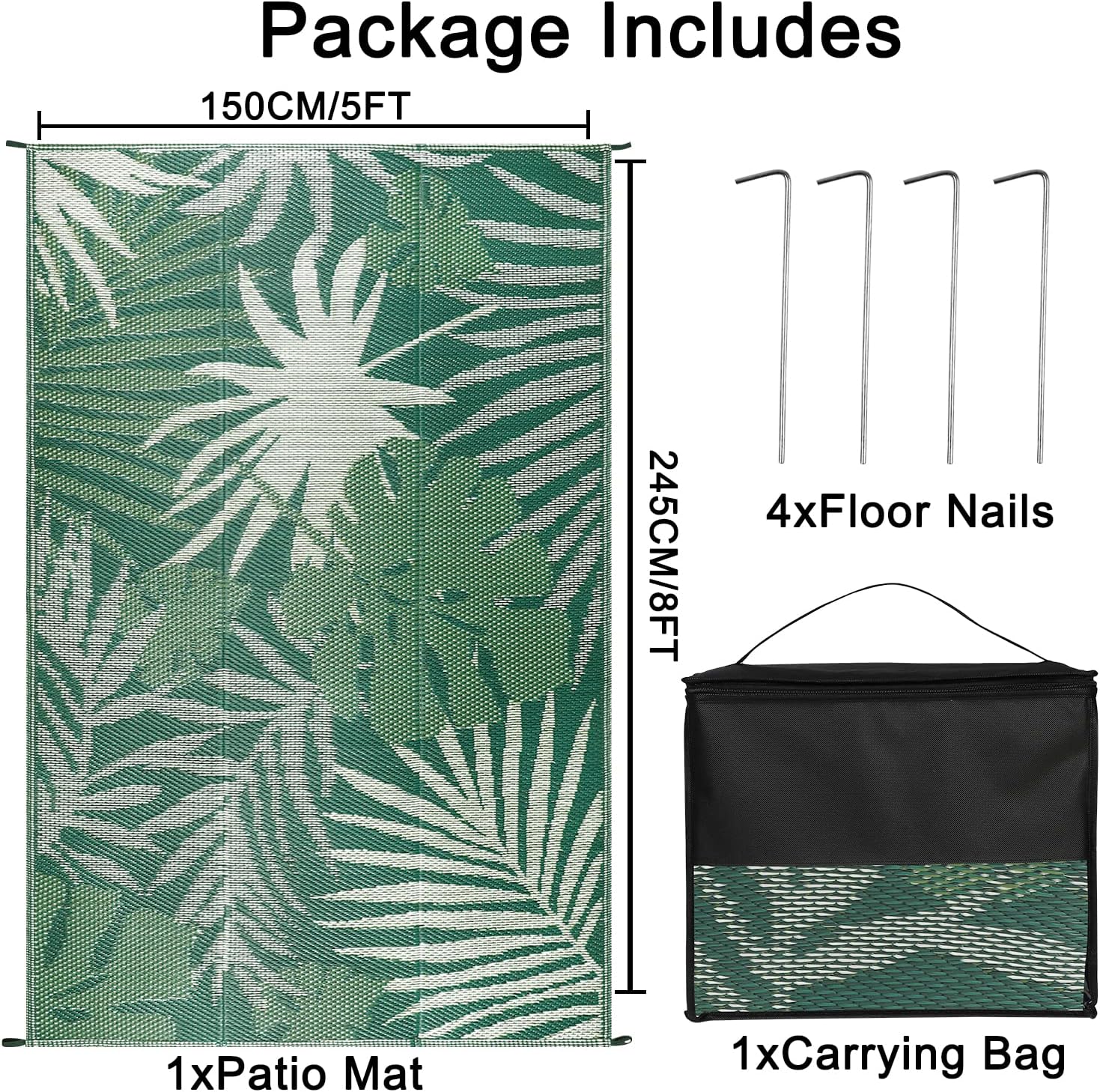 【EASY TO CLEAN & PORTABLE】The reversible outdoor rug is easy to be cleaned,just simply sweep away dirt or spray with water and airing it dry.Foldable outdoor rug is easy to storage,portable for your outing and RV road trip.