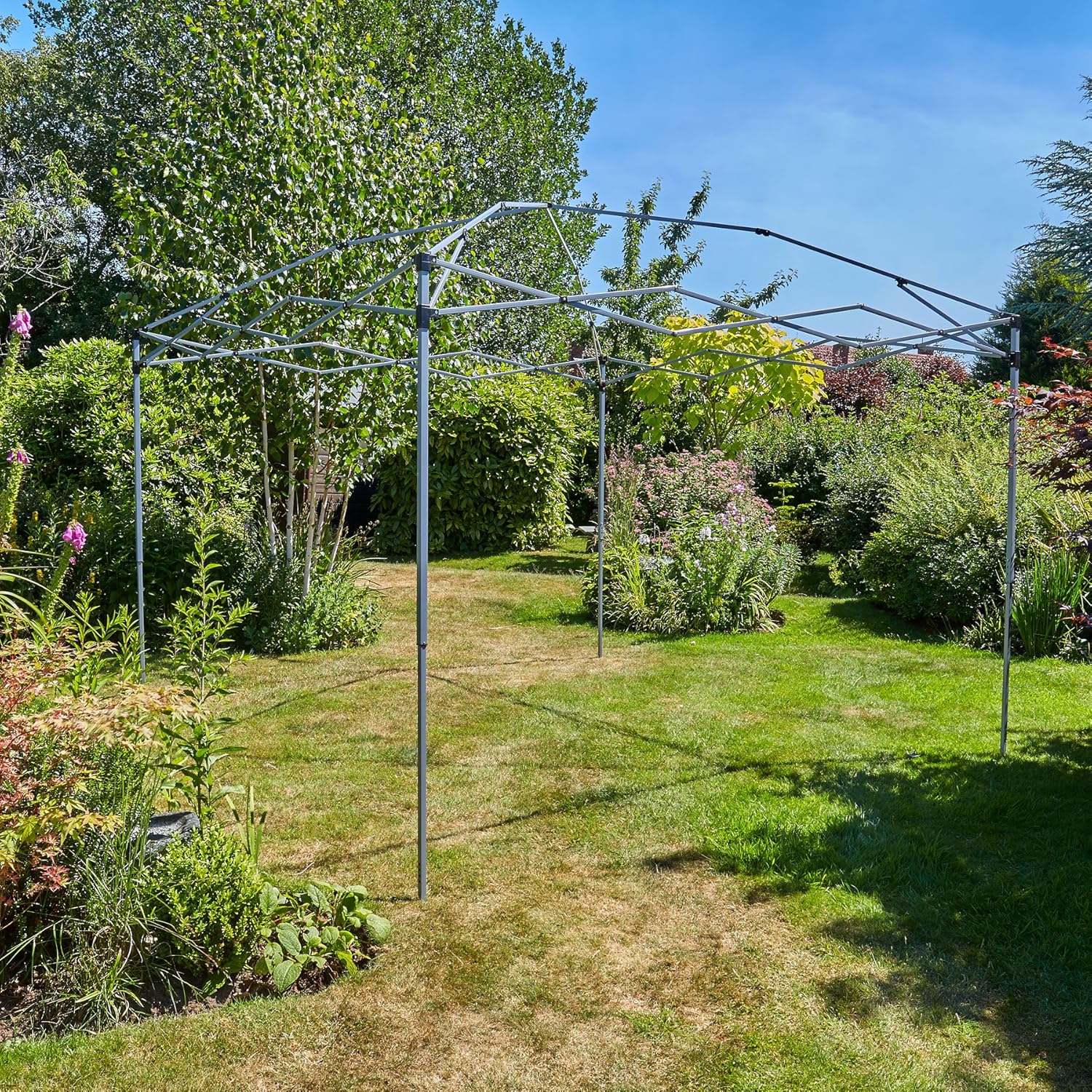 DIMENSIONS – Gazebo Size Constructed = Width = 3m, Depth = 3m. Flat Size = 115cm x 20cm x 20cm.