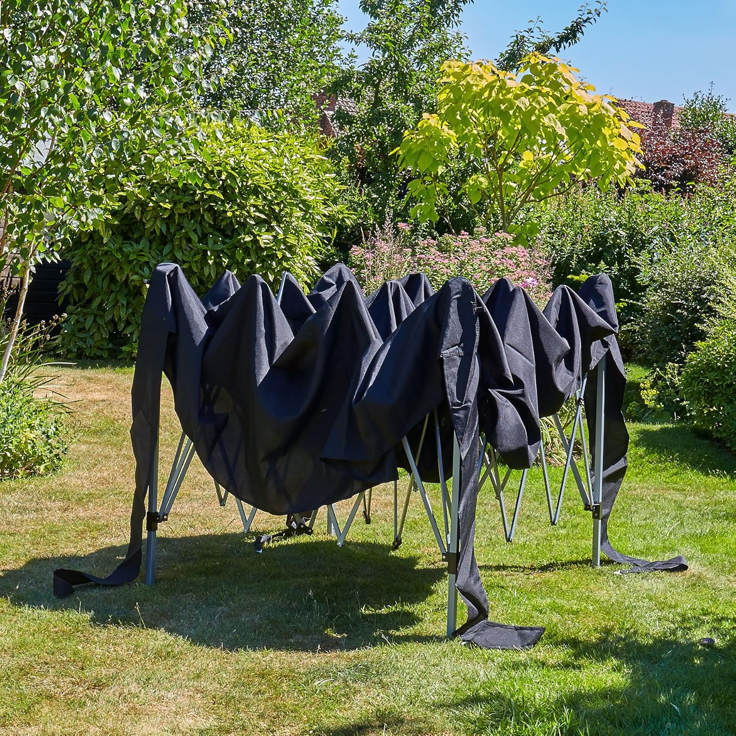 EXPERTLY MADE- Available in beige, black and green options, the gazebo boasts a quick and simple pop-up design and comes with a carry bag included. Starting flat, it takes minimal time to set the structure up. Simply pull apart the corners and place the fabric securely onto the legs. Strong and sturdy, the gazebo should stay in position. Once you have finished using it, the fixture packs away easily into the bag and can be put in a small, compact place to keep safe. This could be a car boot, loft or shed.