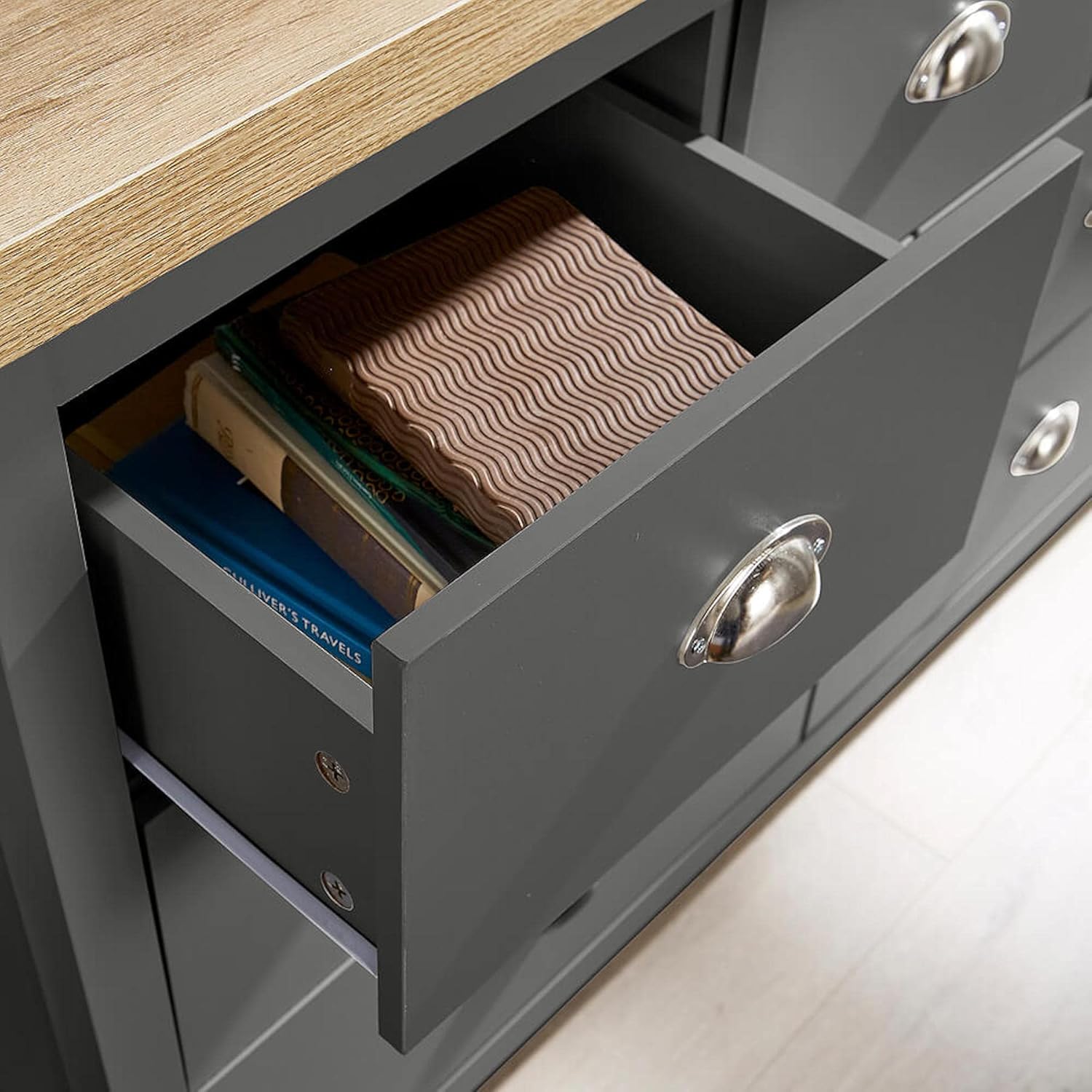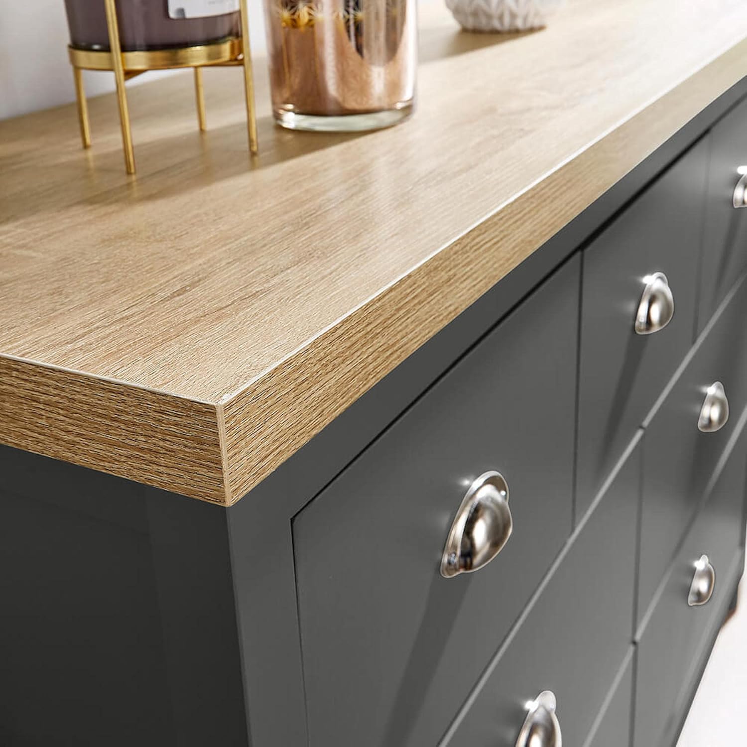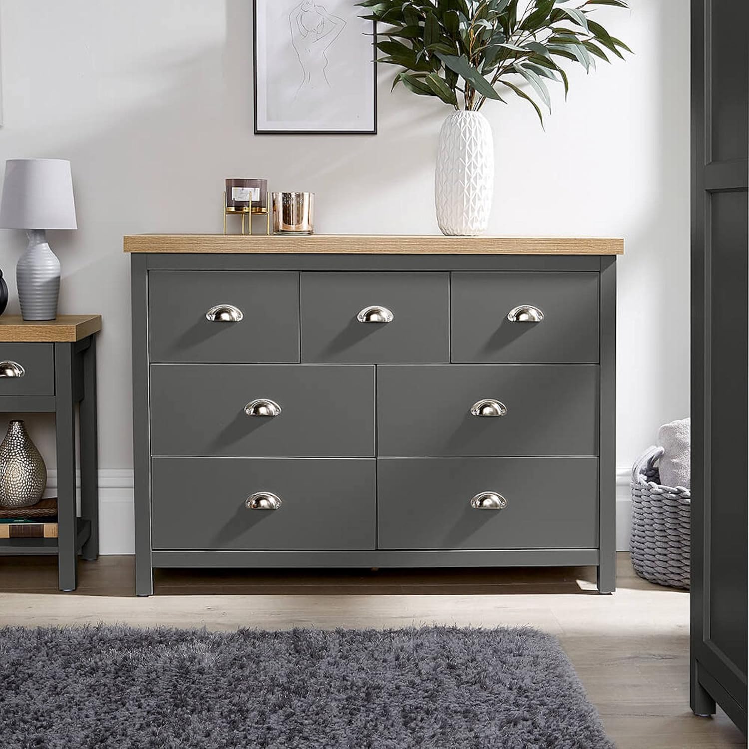 Home Source Wide Chest Clothing Storage Unit, 7 Drawers, Dark Grey, Sonoma Oak Effect, MDF