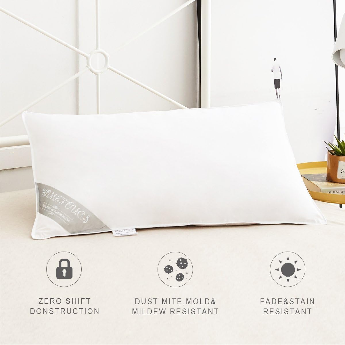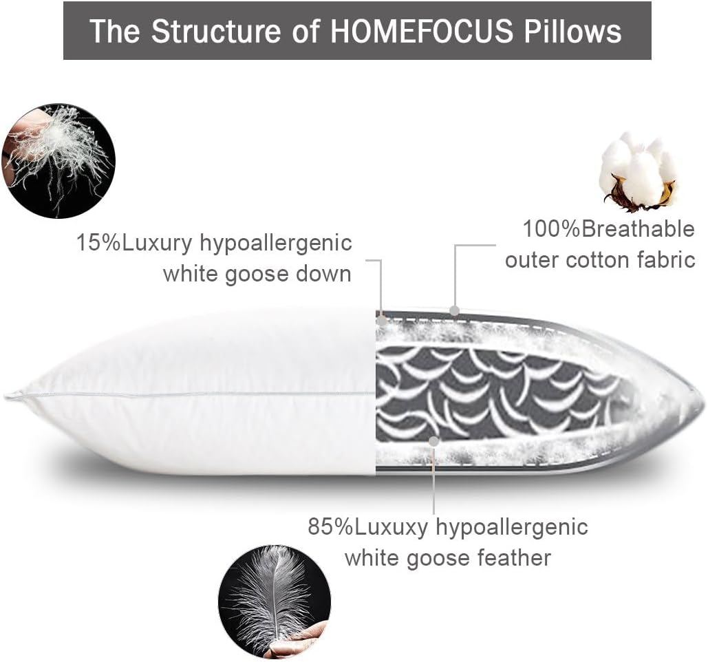 HOMEFOUCS Pair Goose Feather and Down Pillows, 100% Cotton Shell, Non-allergenic & Anti dust mite, Soft Hotel Quality Pillows (15% Down)