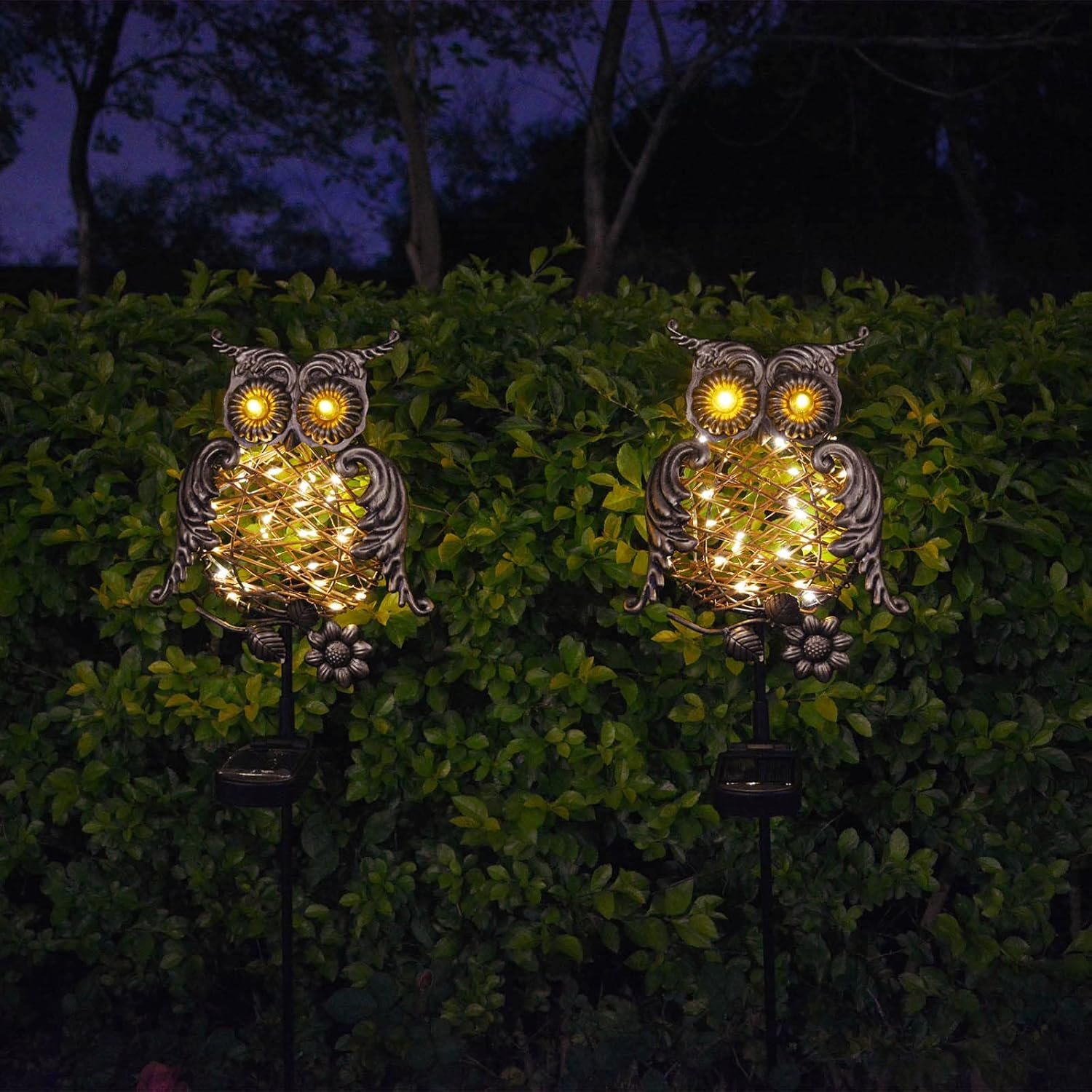 Homeleo Solar Owl Lights with Flickering LED Eyes, Waterproof Metal Owl Garden Ornaments Outdoor, Unique Owl Fairy Light Stake for Outside Yard Garden Decorations, Unique Gardening Gifts for Women