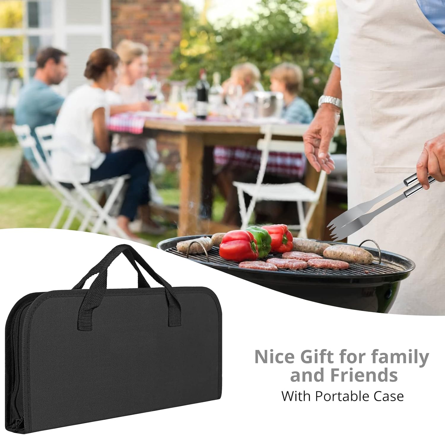 HOMGEN Portable Barbecue Tool Set 27 Pcs Stainless Steel BBQ Accessories Tool Set Multifunction BBQ Grill Utensil Set |Dishwasher Safe|Storage Bag|Heat Resistant Handle| Perfect for Party Camping etc