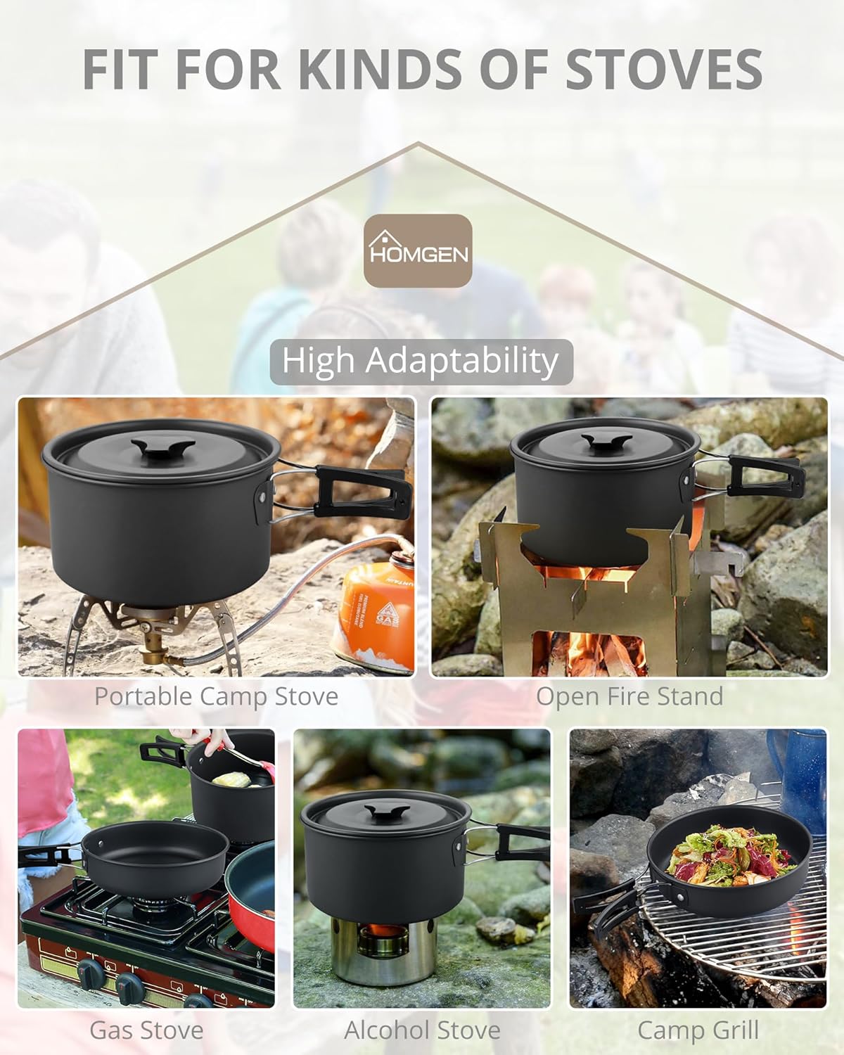 HOMGEN Portable Camping Cooking Set Aluminium Camping Pots and Pans Set for 2 People Lightweight Cooking Utensils Set Outdoor Cooking Mess Kit Durable Camping Cooking Equipment for Camping Hiking etc