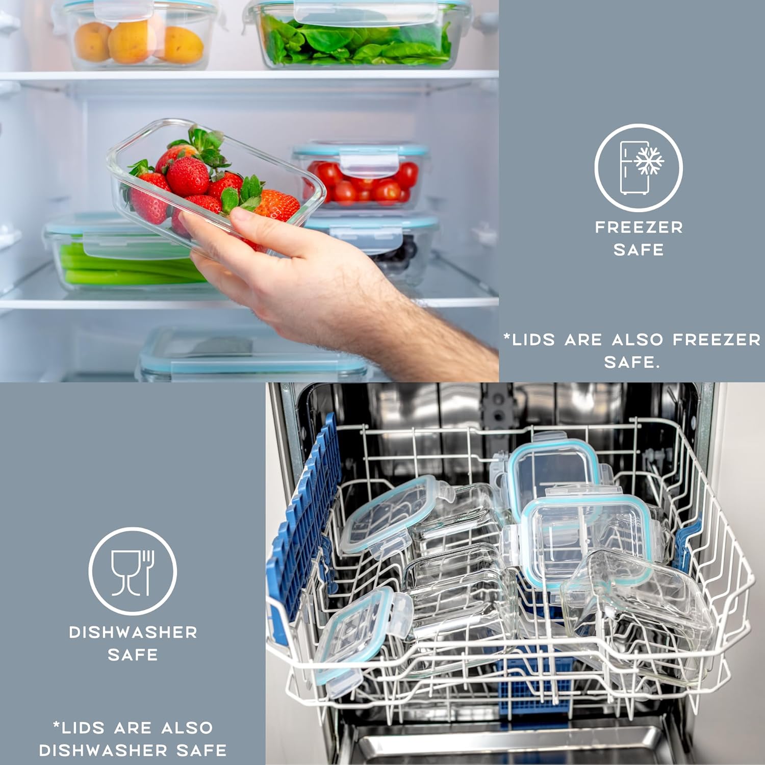 Homiu Glass Food Containers with Lids | Airtight Meal Prep Glass Containers | 4 Pack | BPA Free & Leak Proof | Reusable Microwave, Freezer Oven Safe Lunch Box | Glass Food Storage Containers