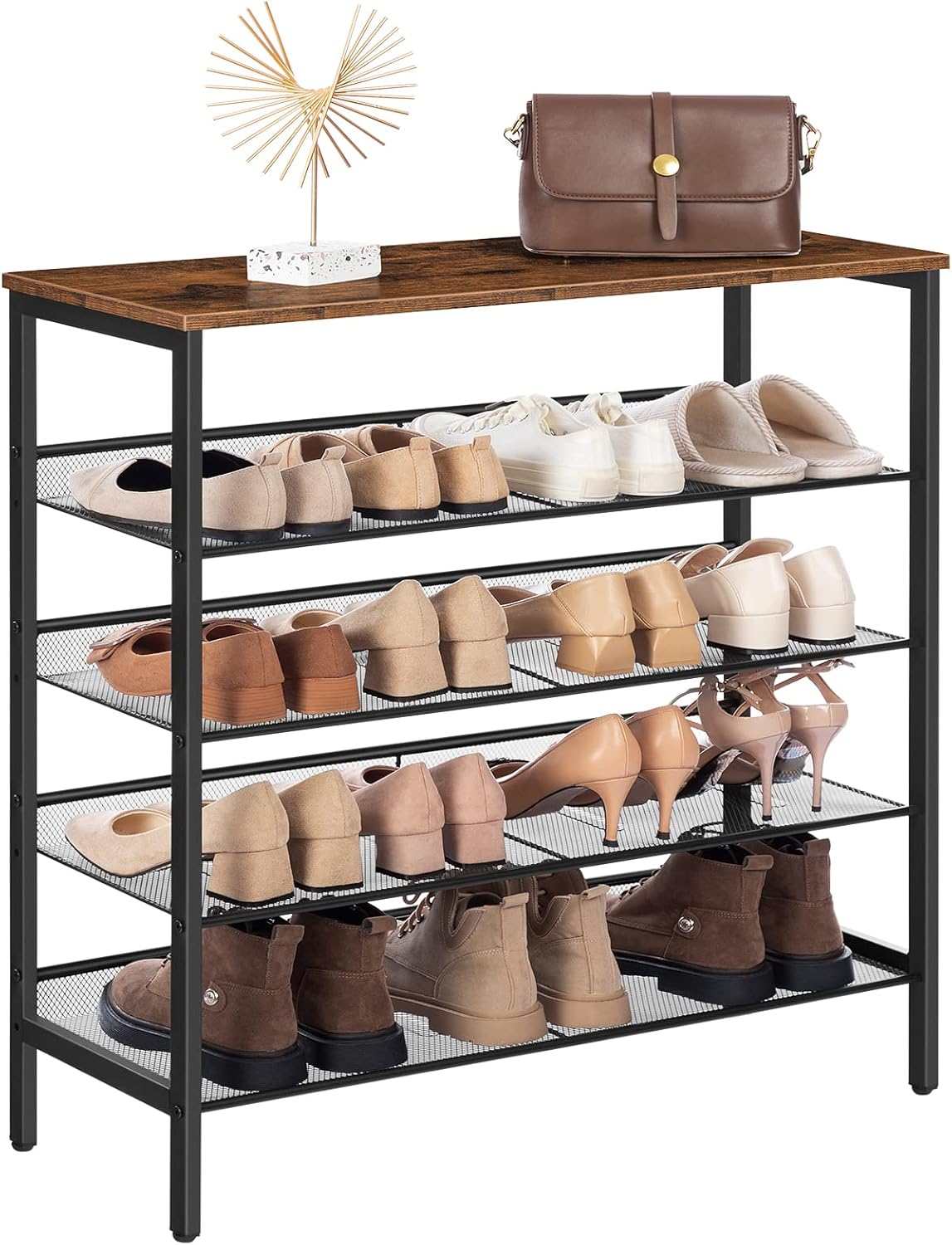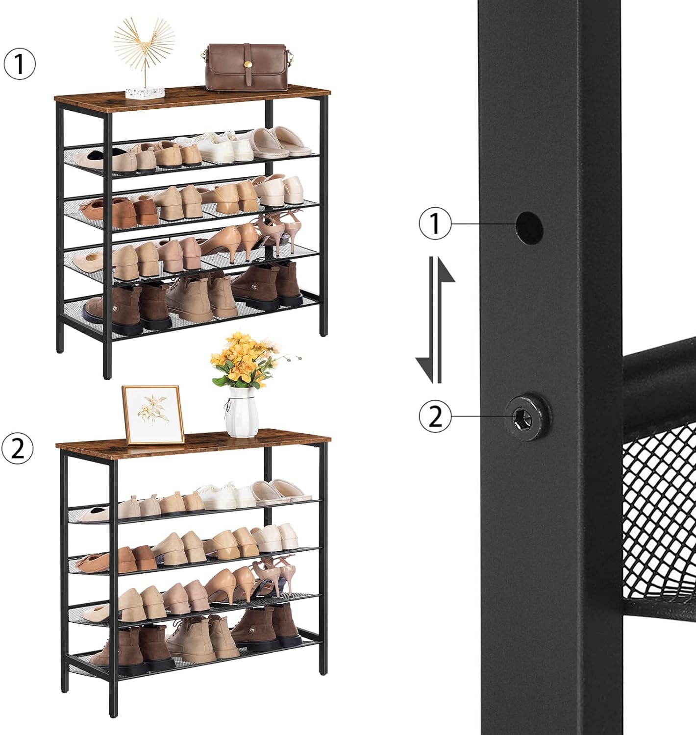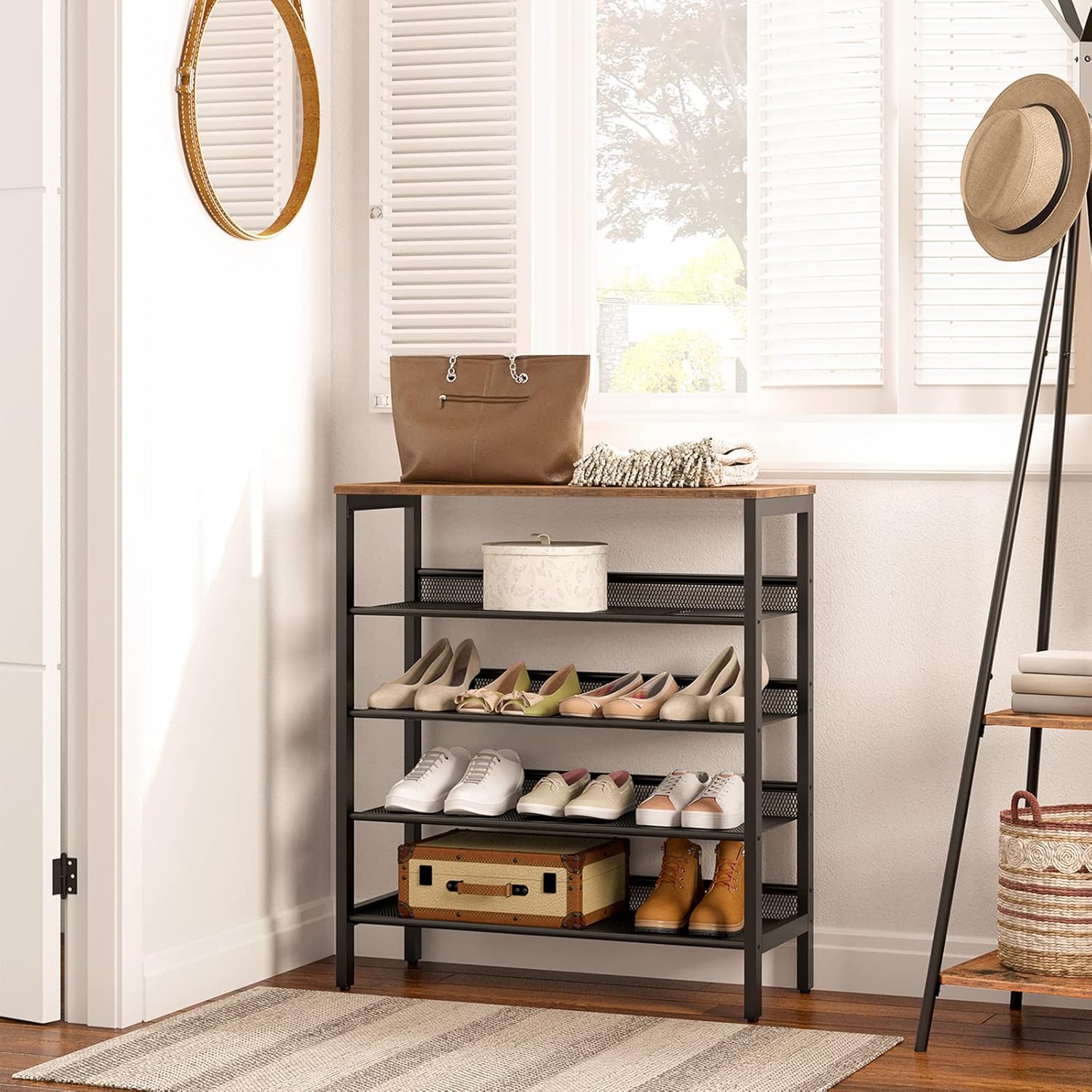 A Piece of Art: The moment your friends entered your entryway, they will be impressed by this attractive 5 tier shoe rack which is crafted with elegant wooden board in rustic brown and sturdy metal frame. That’s what a piece of art looks like!