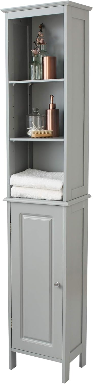 This grey bathroom tallboy cabinet is part of our grey bathroom furniture range. It offers ample storage space inside and out and would suit any bathroom.