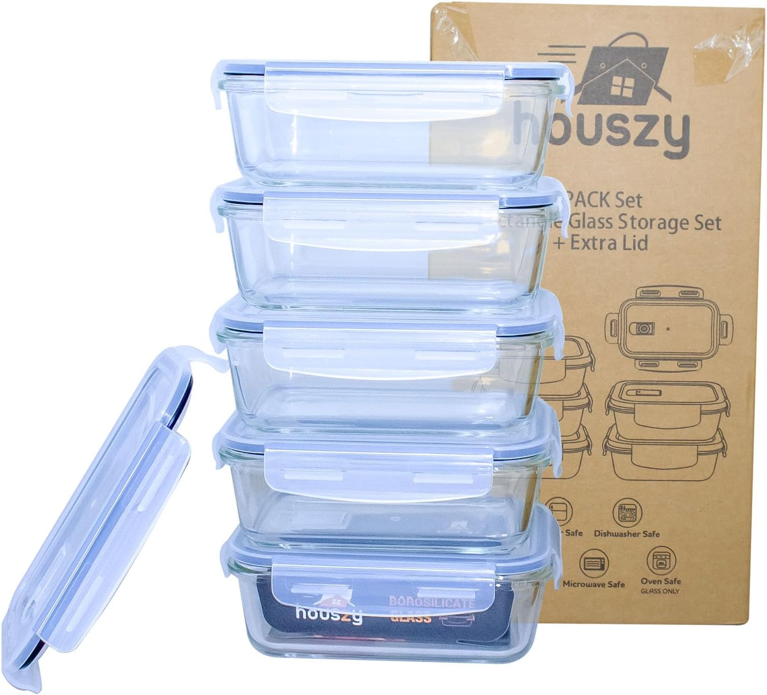 Houszy 5-Pack Glass Meal Prep Containers, Perfect Choice For Every Home