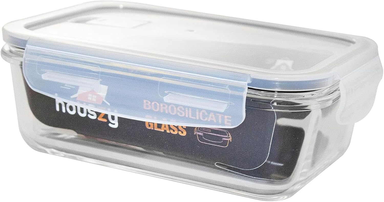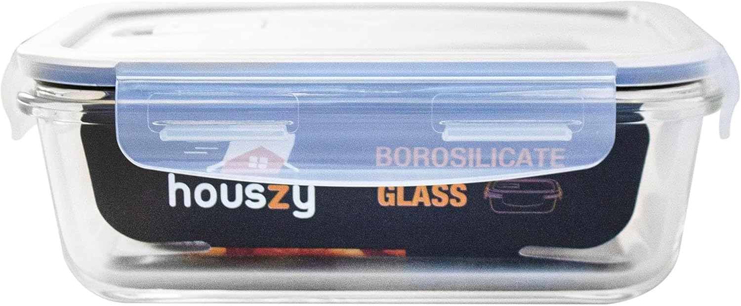 Premium Meal Prep Containers-11 Pieces ✅ The Houszy 840ml glass food storage containers are made of high-quality borosilicate transparent glass that is durable. These rectangular containers come with six airtight snap-lock lids that boast a BPA-free food-safe composition, ensuring that your meals remain fresh and uncontaminated. The glossy, transparent glass body enhances the appeal and taste preservation of your meals.