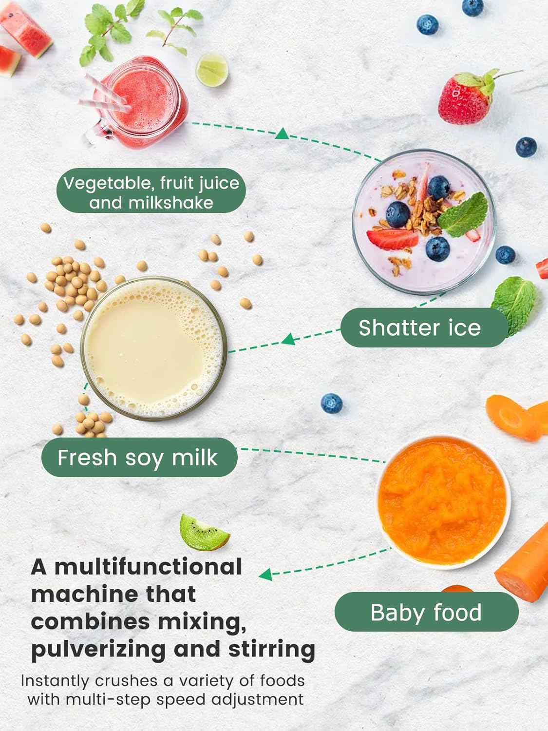 【Professional Multi-function Blender】The professional kitchen blender has multiple applications. You can use it to make juice, smoothie, crushed ice, soy milk, sauce, baby food and so on. A practical blender with many functions in one!