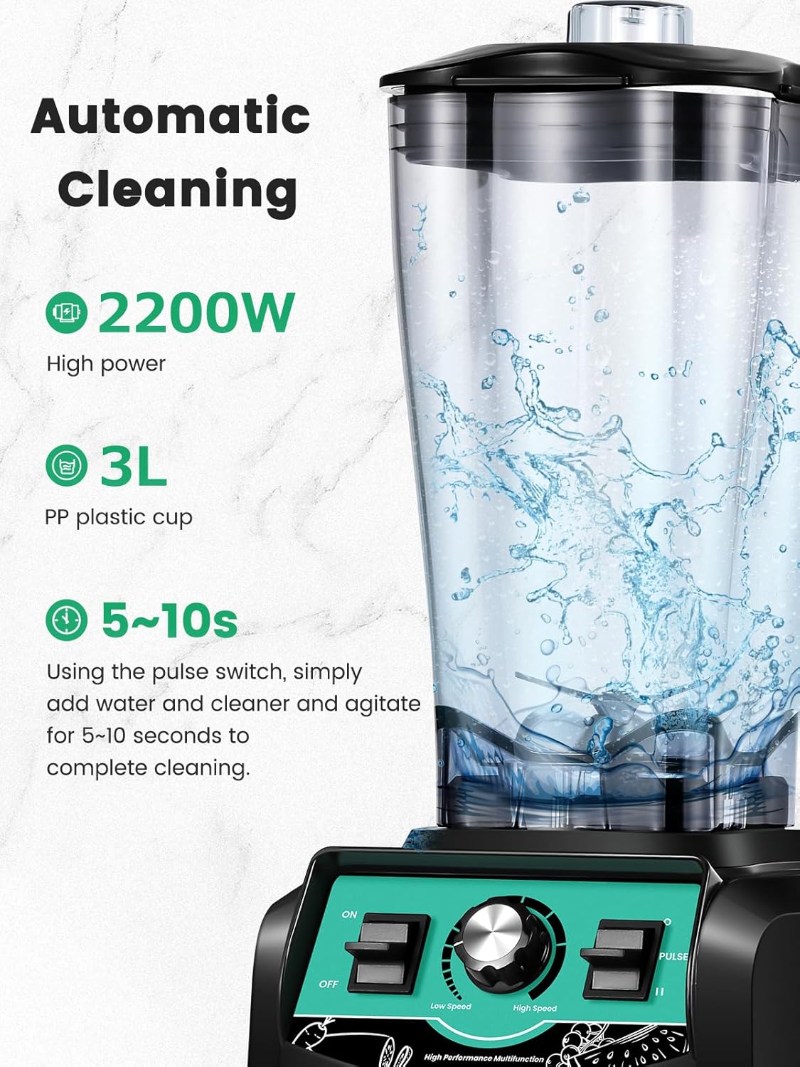 Huanyu Blender Smoothie Maker 3L Large Capacity High Speed Blender 2200W Commercial Multi-function Jug Blenders for Crushing ice, Juice, Smoothie, Milkshake and Soy Milk
