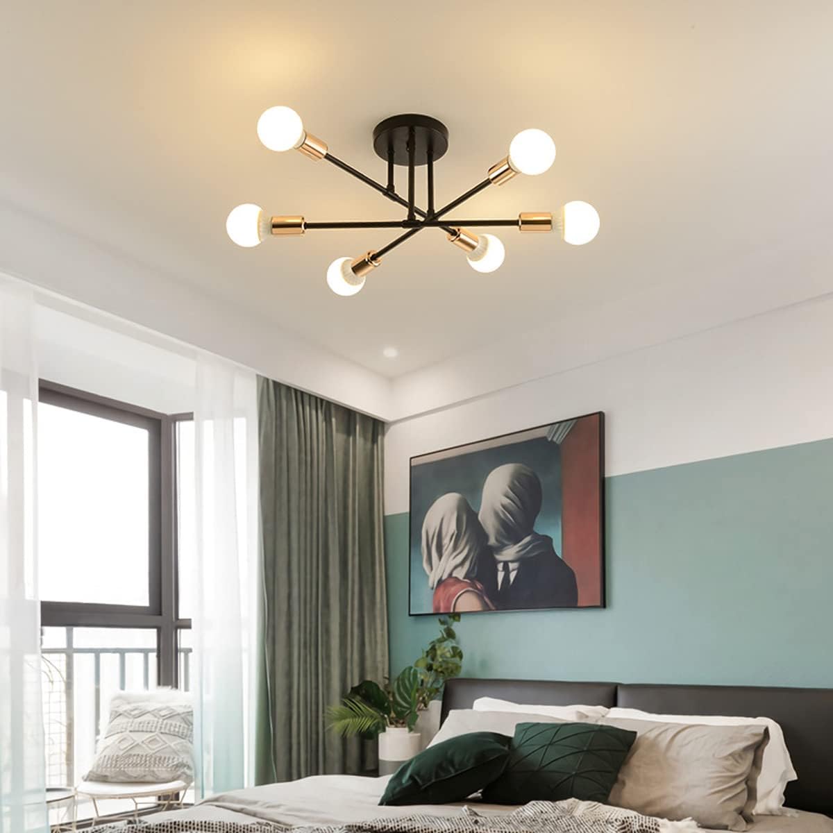 Wide Application:This Sputnik ceiling light adopts black spray paint technology and advanced electroplating technology,with a touch of industrial,it is an ideal choice for harmoniously blending various furniture styles.Perfect lighting fixture for living room, bedroom, kitchen, hotel, restaurants, cafes, bars, clubs, galleries, etc.