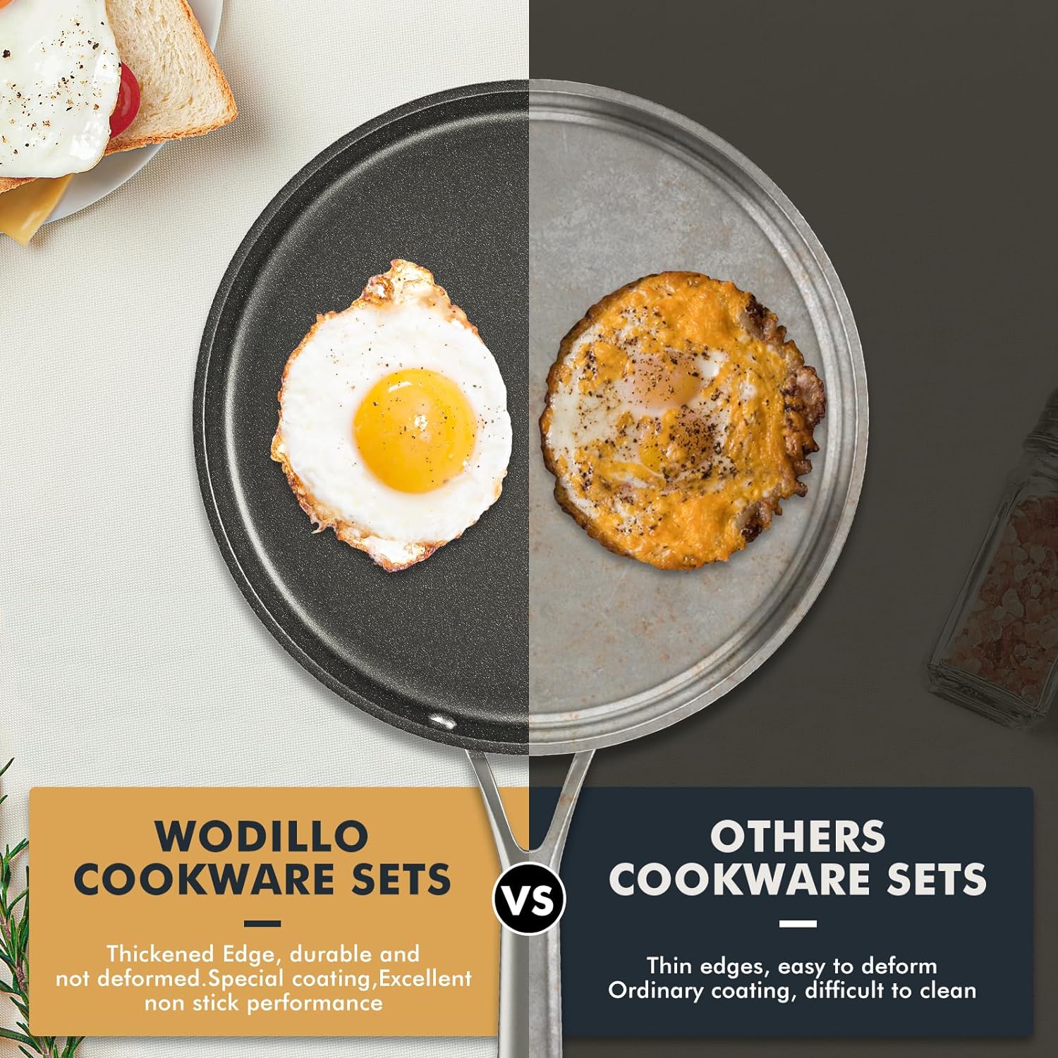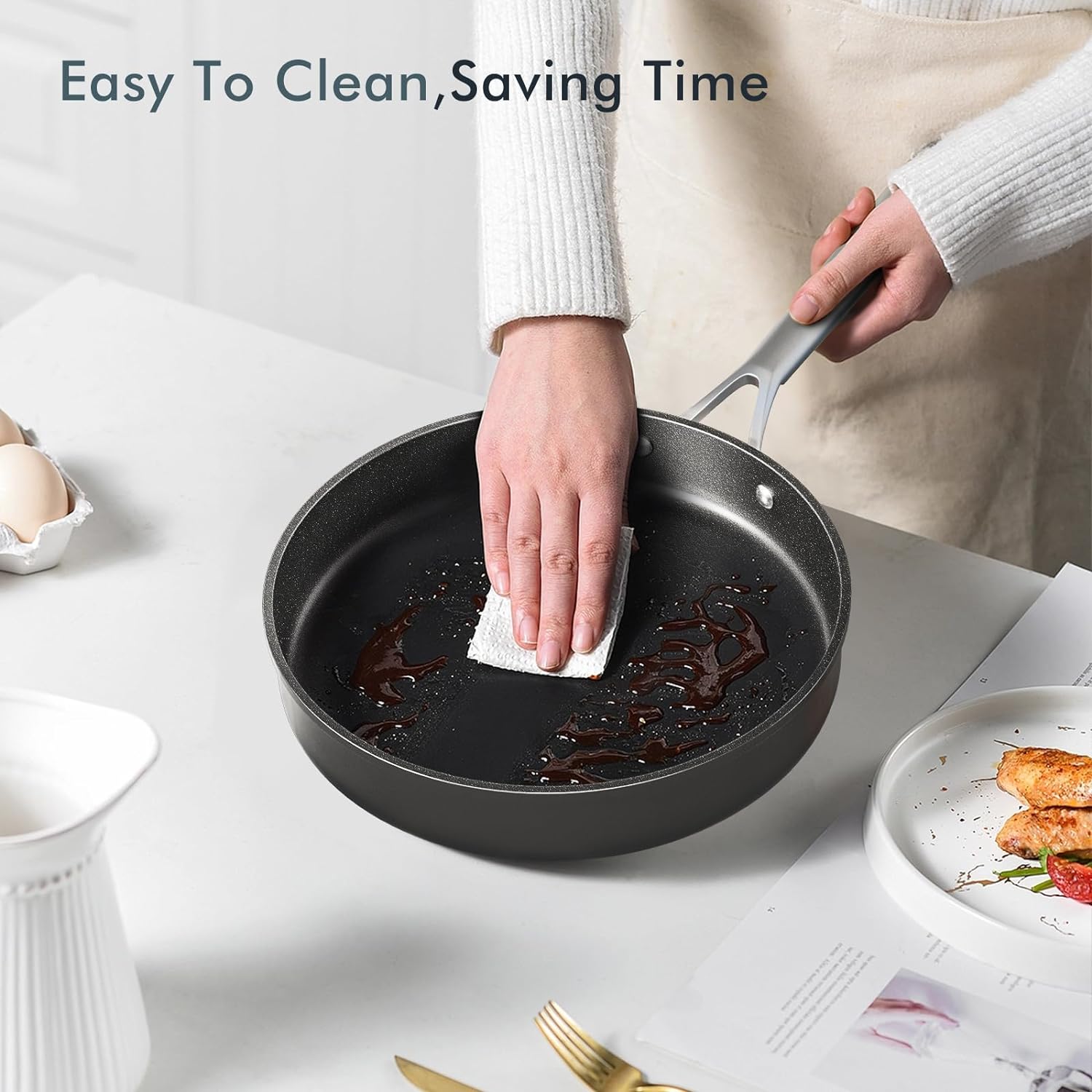🥘【EASY CLEANING & SAVING TIME】Our non-stick cookware set require less oil or butter for cooking and minimal scrubbing for a spotless clean. We make cookware that give you a healthier and easy at home culinary experience.