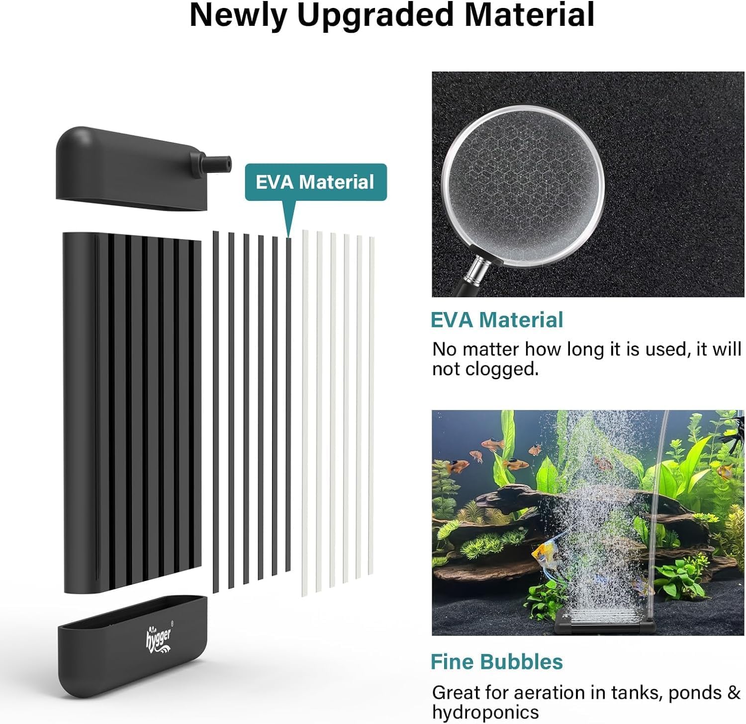 hygger fish tank bubbler are made of EVA material. It is fish-friendly, durable and will not get clogged.