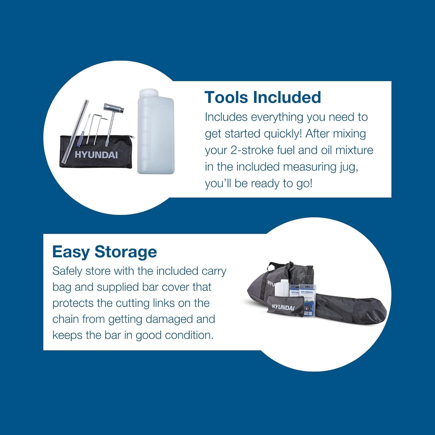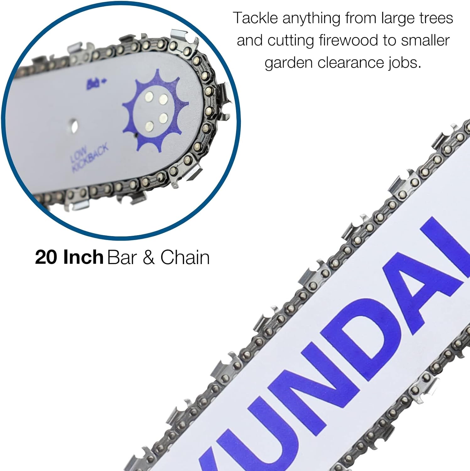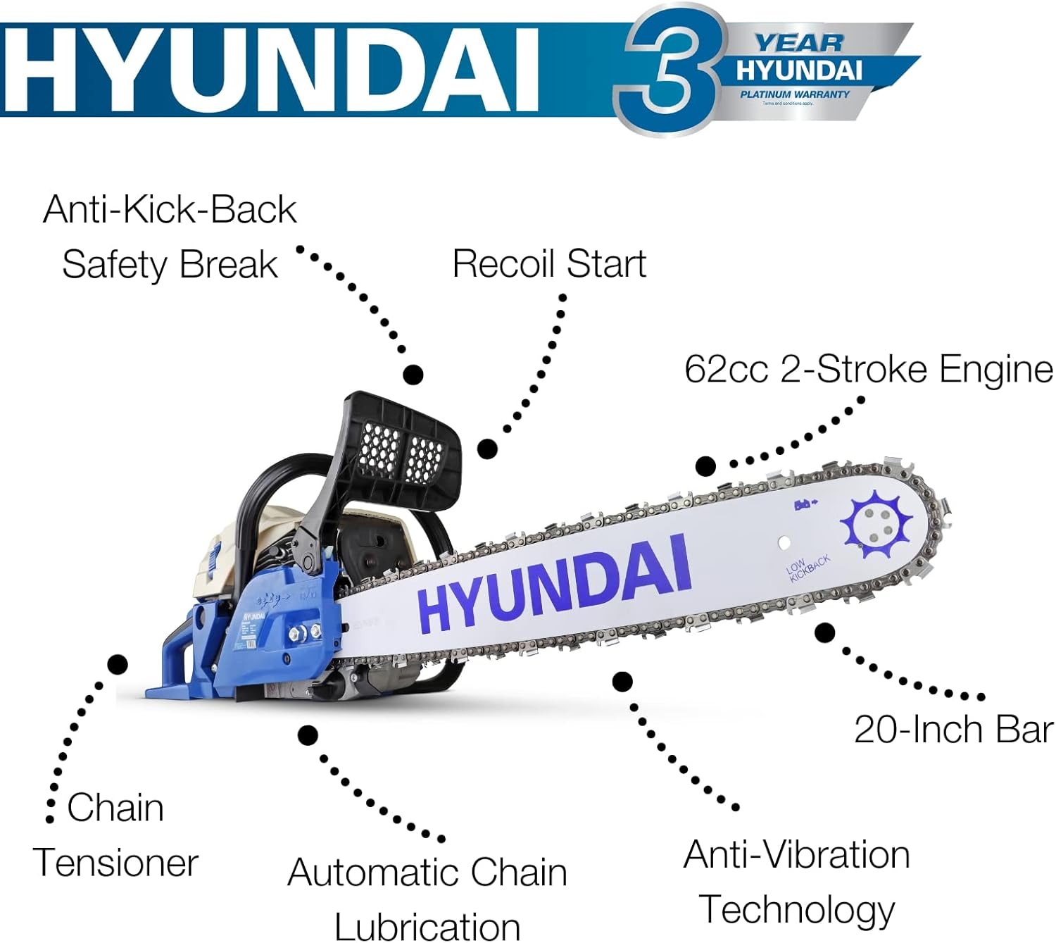 Hyundai 62cc 20” Petrol Chainsaw, 2-Stroke Easy-Start with 3 Year Warranty, Blue