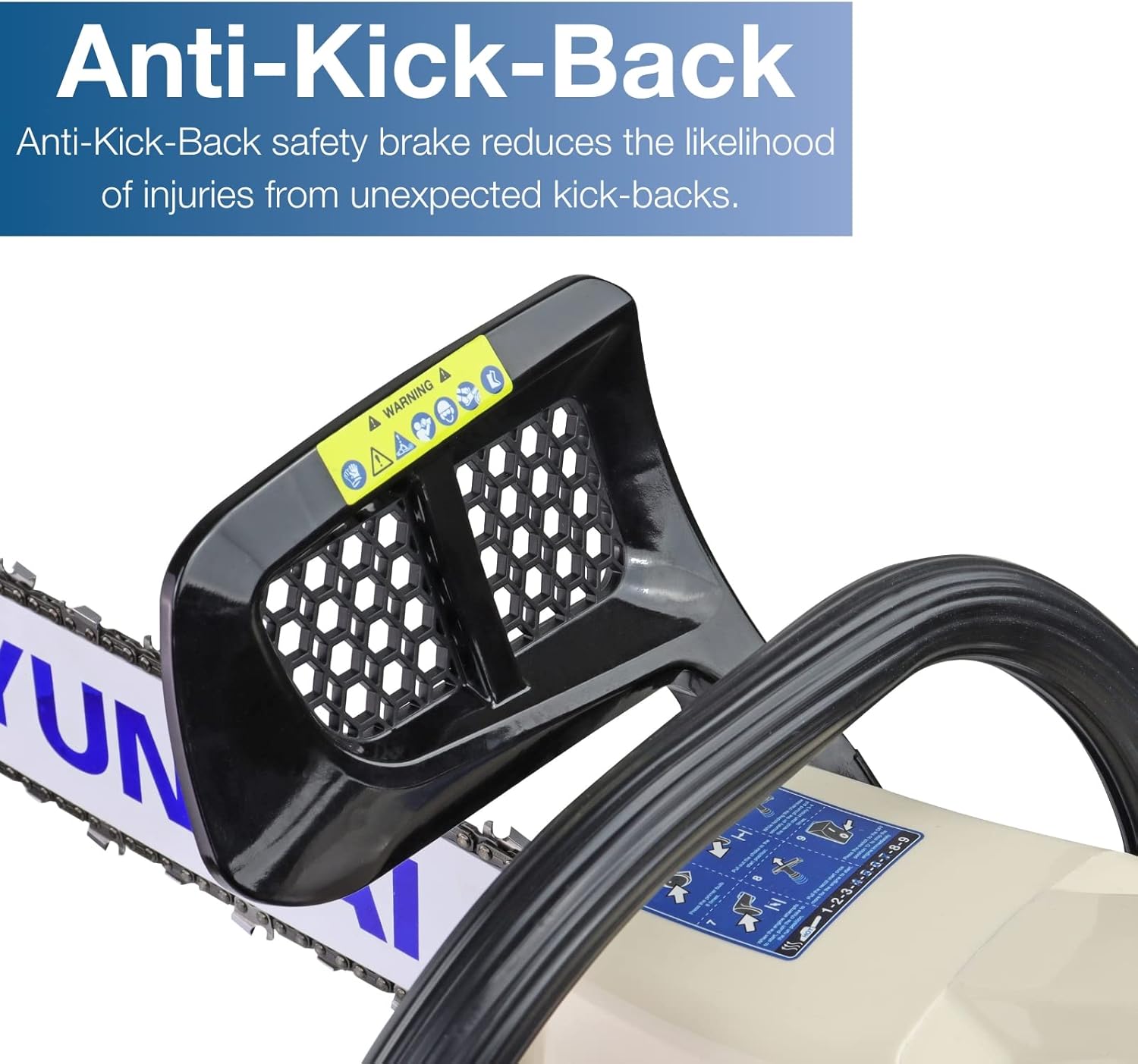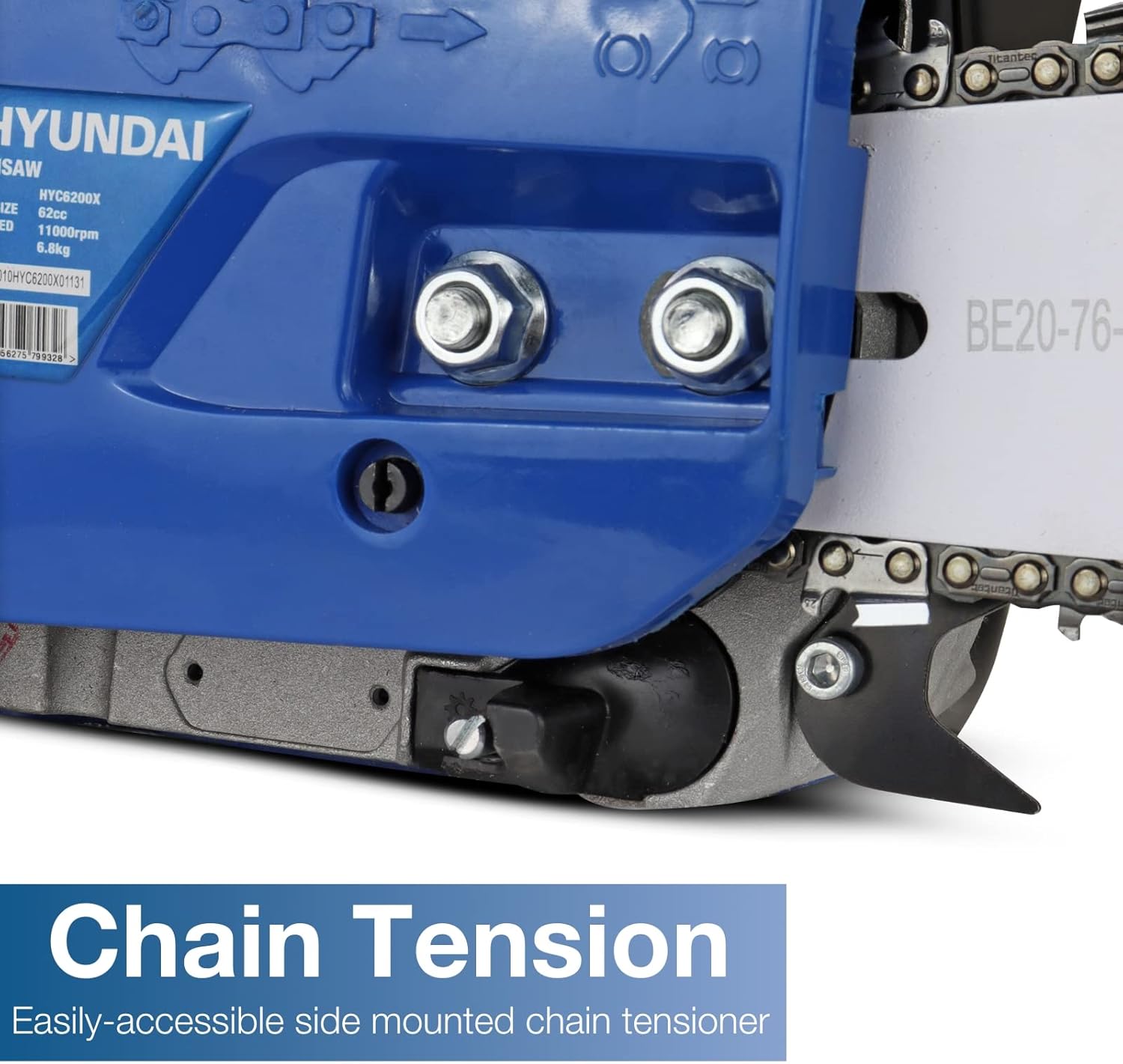 The Hyundai HYC6200X is equipped with an easy to use chain safety break and anti-kick-back safety brake: To reduce the likelihood of injuries from kick-backs.