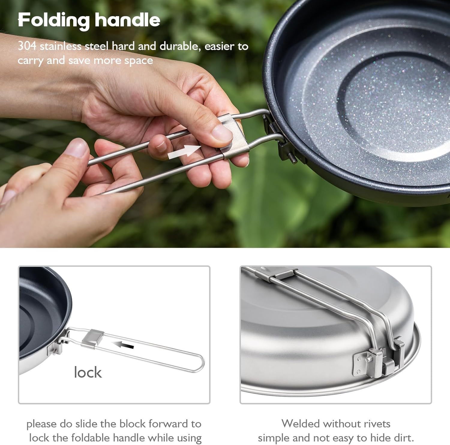 iBasingo 188mm Titanium Non-Stick Frying Pan 1000ml Camping Cookware Outdoor Travel Skillet with Folding Handle Lightweight Portable Backpacking Cooking Kit Fry Steak Egg Dish for Gas Stove Ti2069C