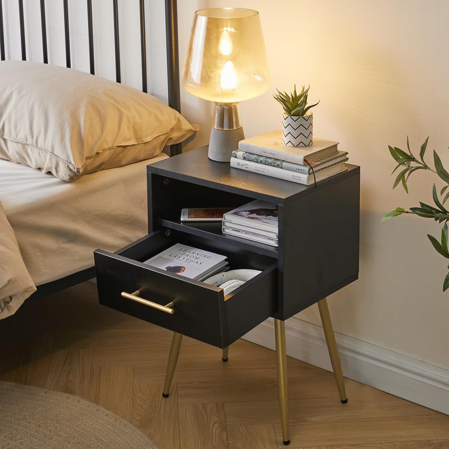 Our nightstand features a contemporary style in black and gold color palette. It can be paired with any décor and furniture in your home to create a serene, minimalist, sophisticated and stylish ambiance for a textured space!