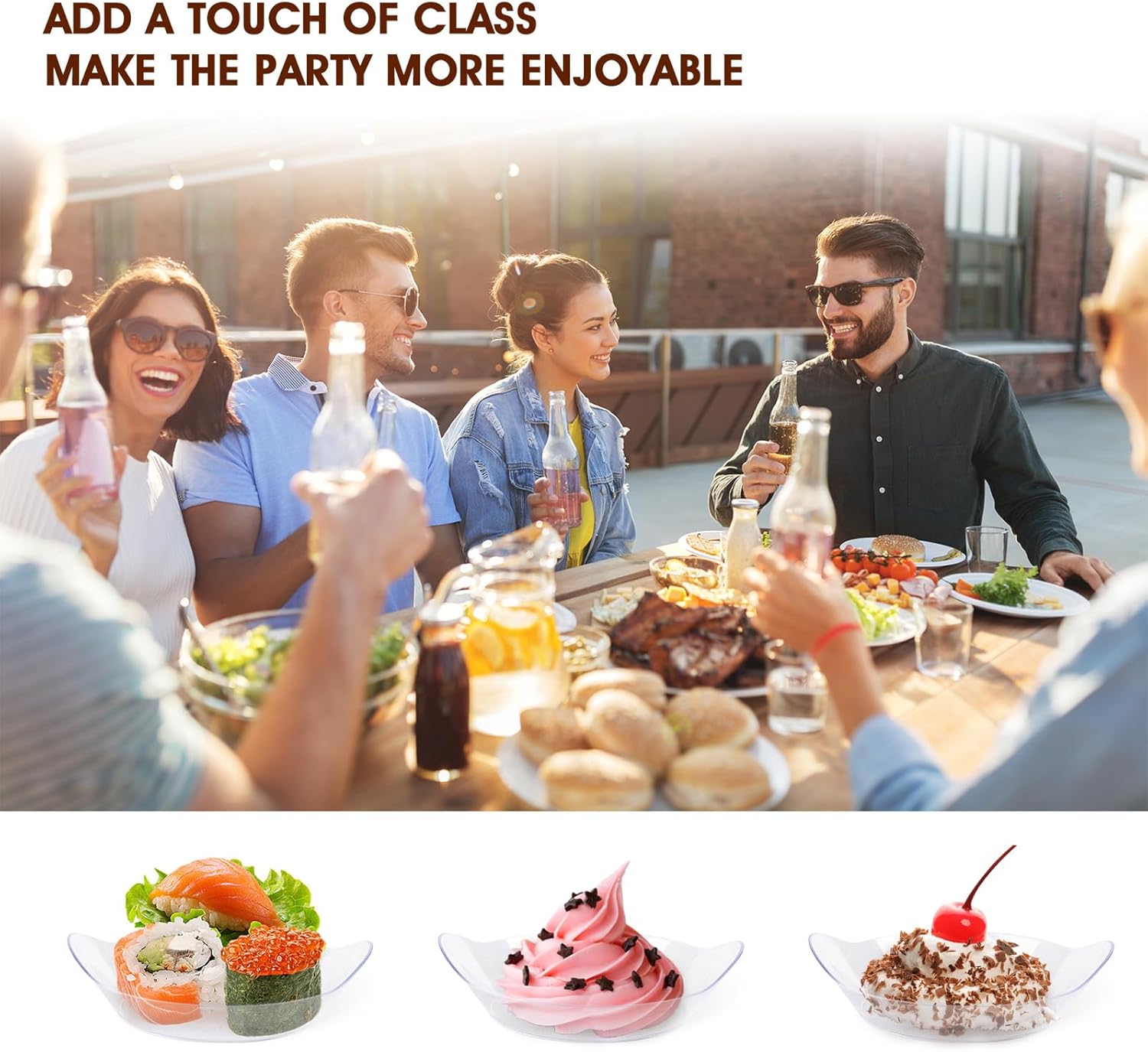 50 clear dessert plates, transparent design lets you see the beauty in life, perfect bite-size dessert plates, perfect for holding puddings, jellies, tiramisu, mini desserts, fruit displays, sandwiches and more, they are the highlight of any party decoration, can be said to be the icing on the cake.