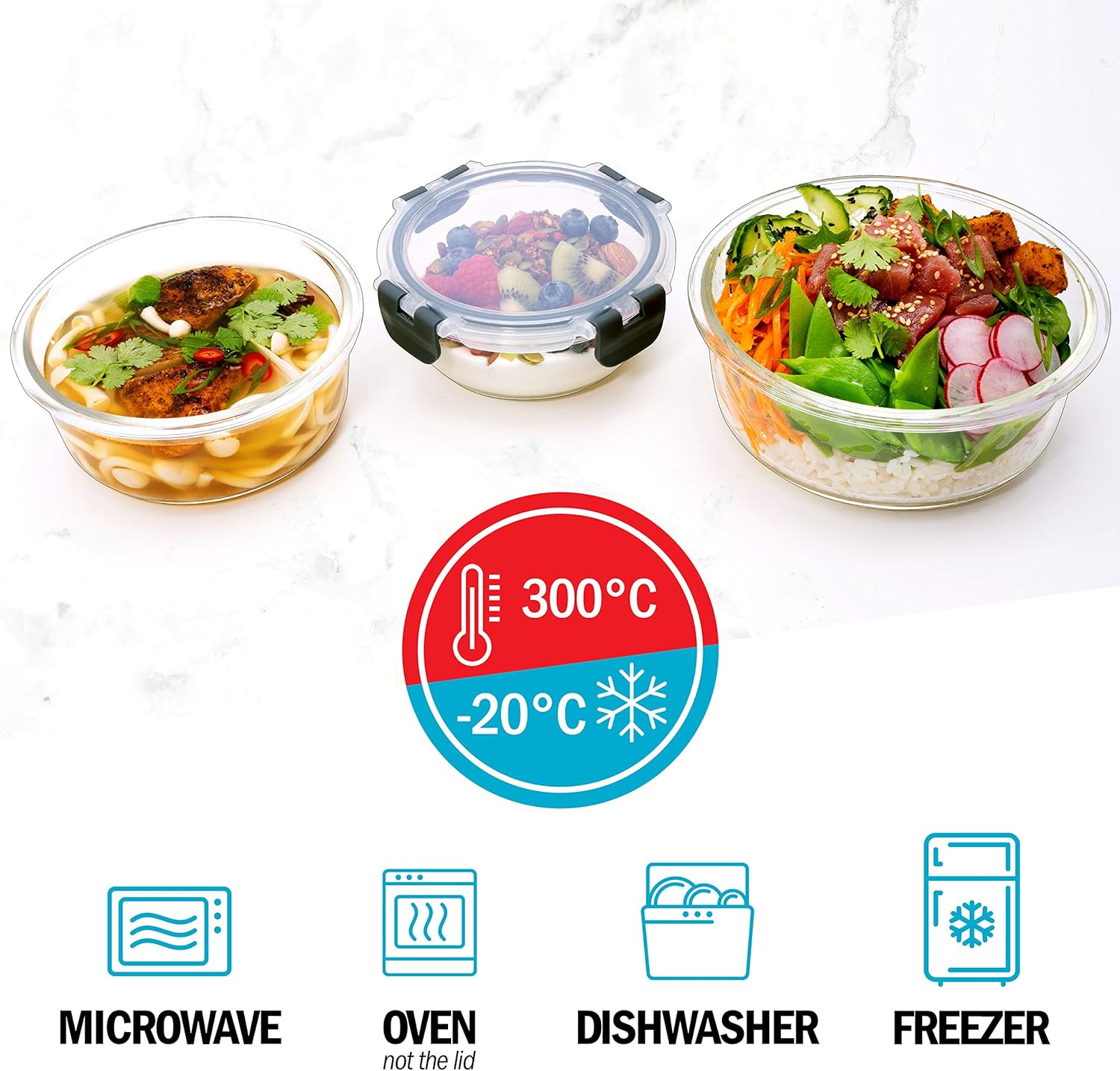 ★ OVEN, MICROWAVE & FREEZER SAFE ★ Made from durable high- quality borosilicate glass, which is stronger than standard tempered glass. Designed to withstand high and low temperatures, so you can reheat or cook your food directly in them. They are freezer safe too!
