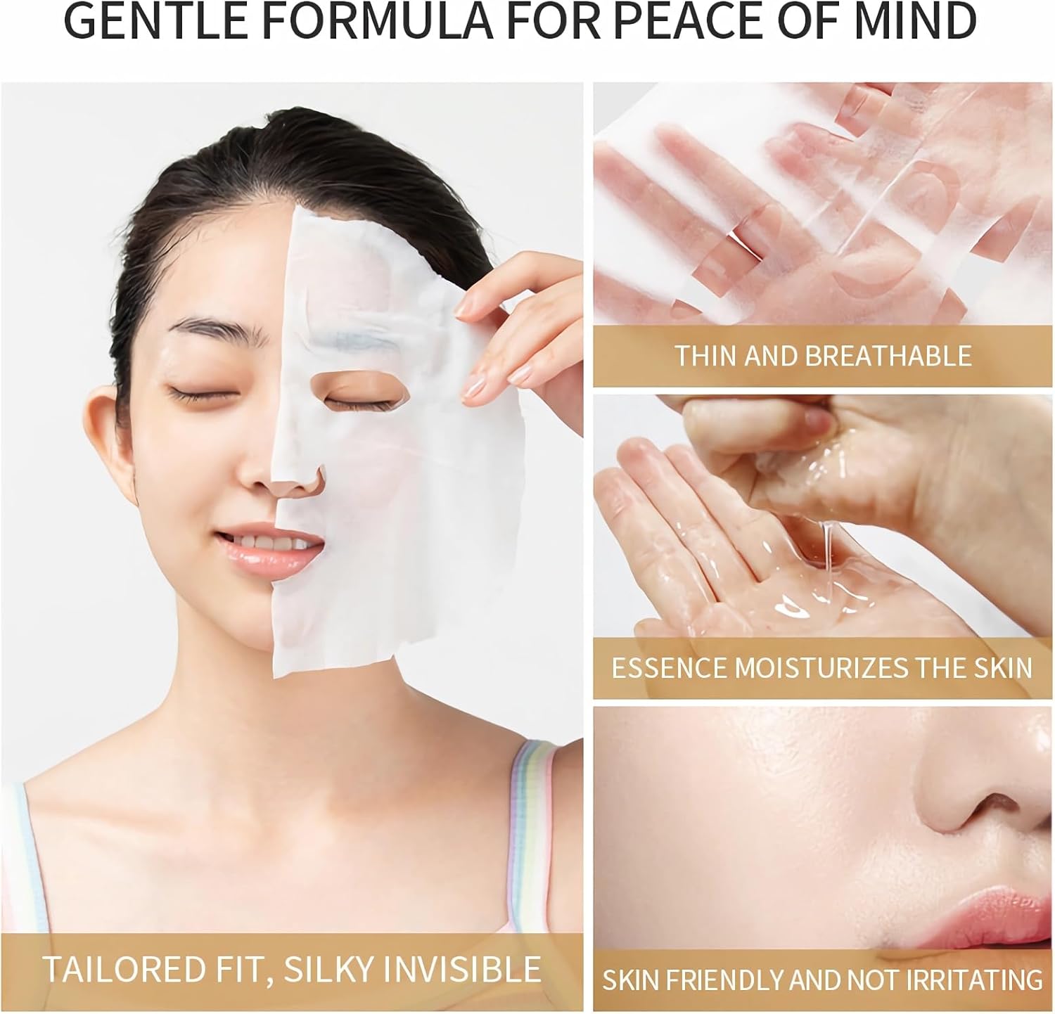 【Safe Ingredients】: Our sheet mask contains safe ingredients such as VC, VE, salicylic acid, and green tea extract. It contains no alcohol, no fluorescent agents, and no hormones. And suitable for all skin types.