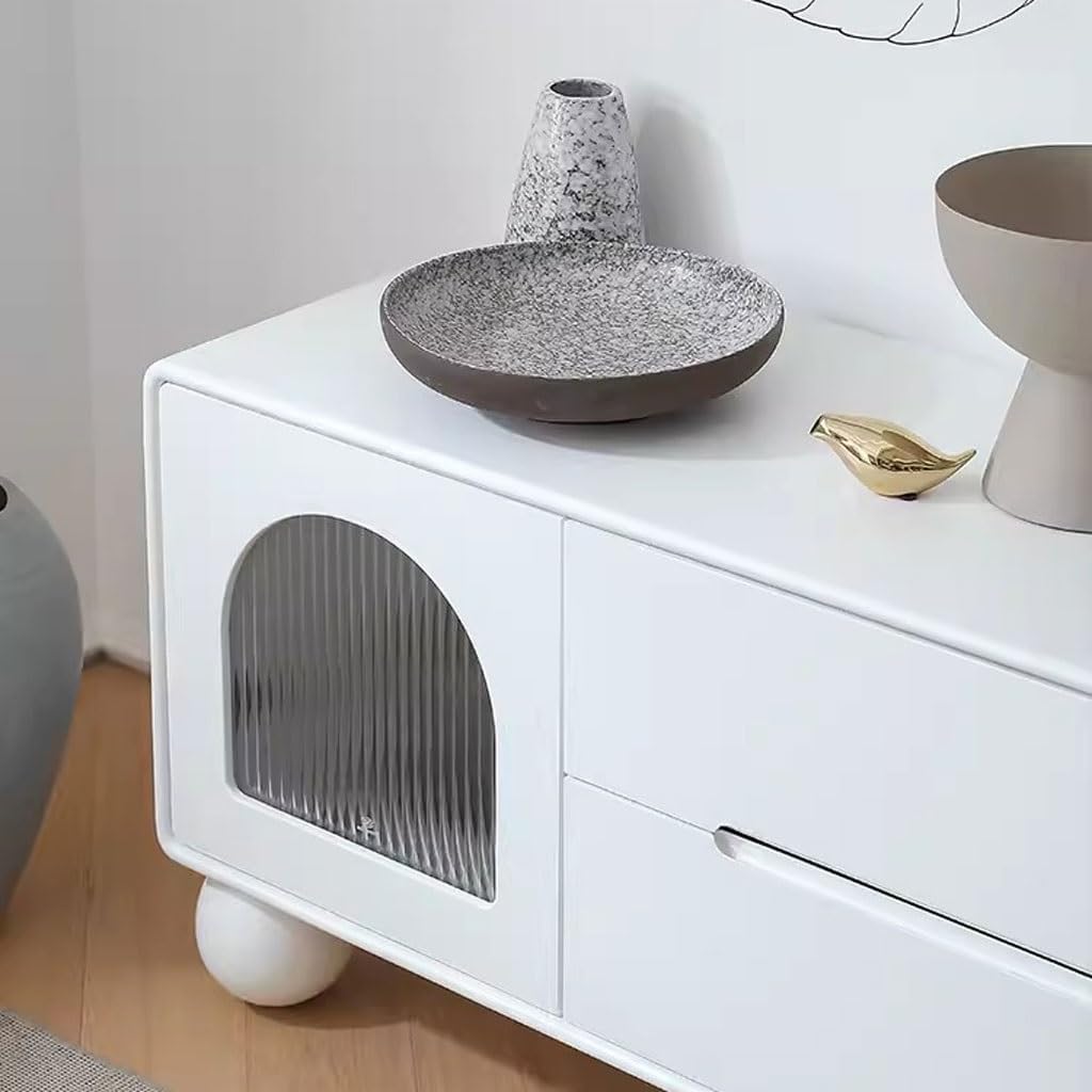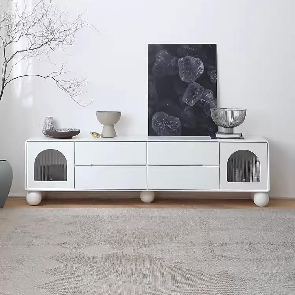 IMEITE Entertainment Center Nordic Simple Cream Style TV Cabinet Living Room Media Entertainment Center Home TV Cabinet Storage Cabinet Tv Stands For Living Room