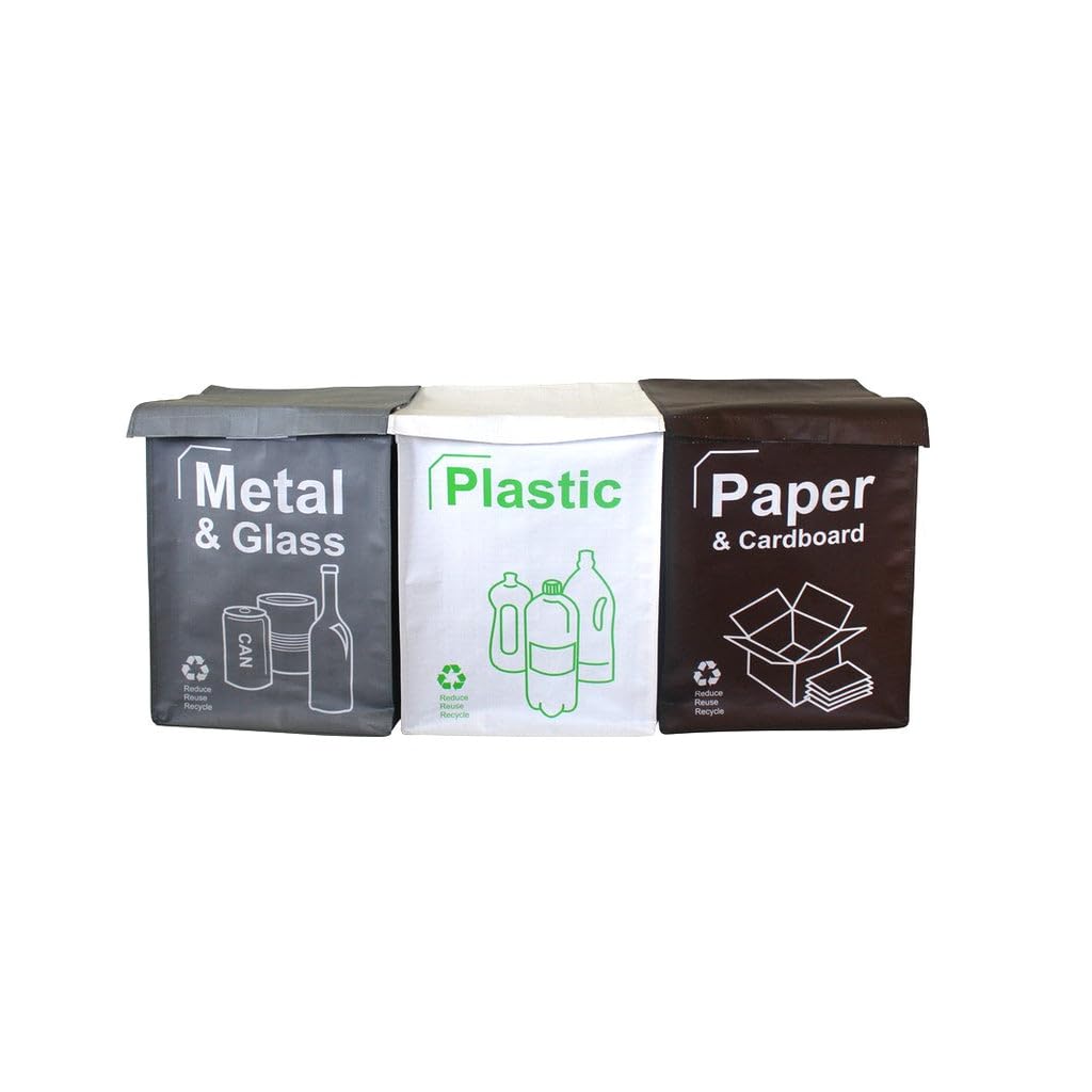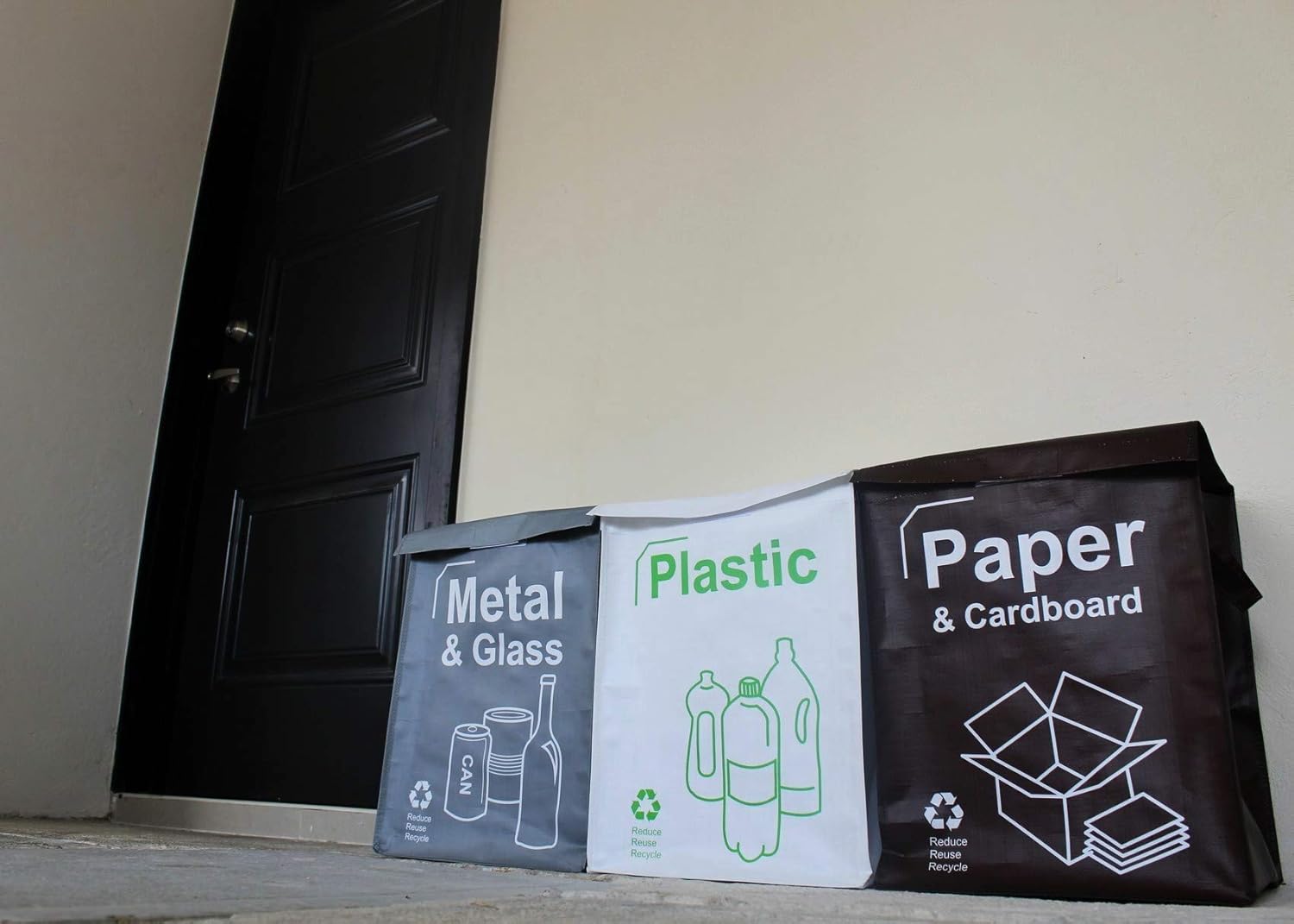 SET OF 3 : This set contains one bag for Plastic, another for Glass & Metal and a third for Paper & Cardboard. It is the complete recycling solution for your home or building. They are super stylish and would look great in your kitchen, utility room or hallway.