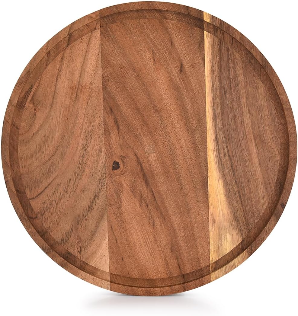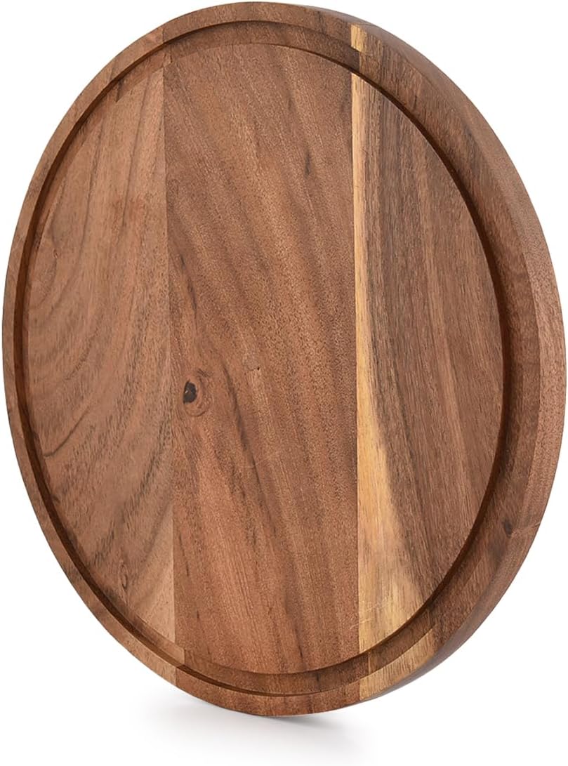Indus Lifespace Round Acacia Wood Cutting Board with Juice Groove for Chopping and Serving Charcuterie, Vegetables & Fruits (25.4cm x 25.4cm x 1.91cm)