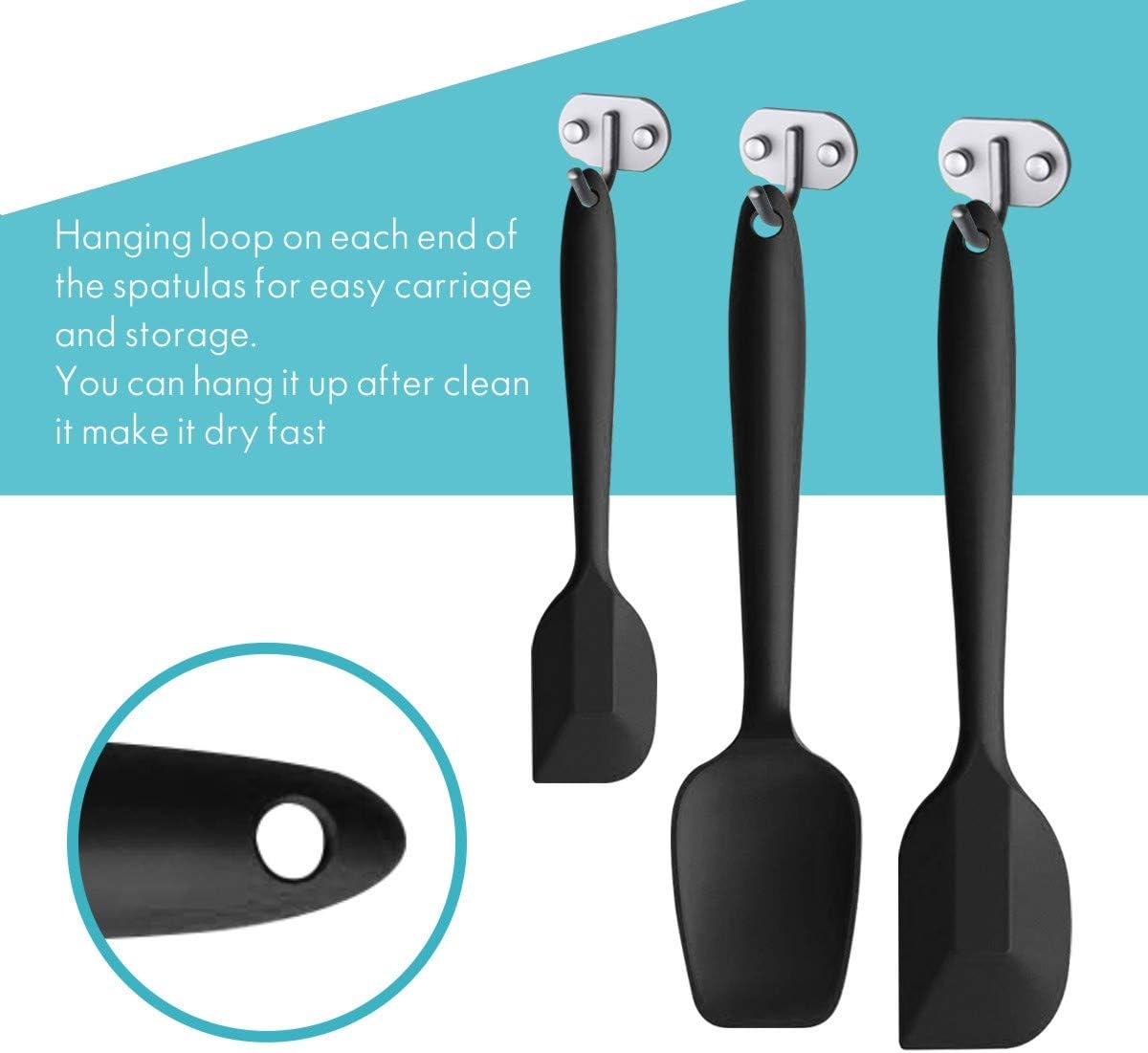 Convenient Hanging Loop Design: it has hanging loop on each end of the spatulas which is for storage. So you can make it dry fast after cleaning. Besides silicone spatula can be cleaned by hand or in the dishwasher.