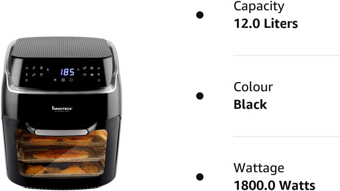 FEATURES: Multi-Functional and Easy to use Powered by 1800 watts 12 Litre Large Capacity Healthy Cook Food Dishwasher Safe One Touch Control Panel 12L Digital Air Fryer Oven Color: Black Item Weight: 9.2kgs, Capacity: 12L