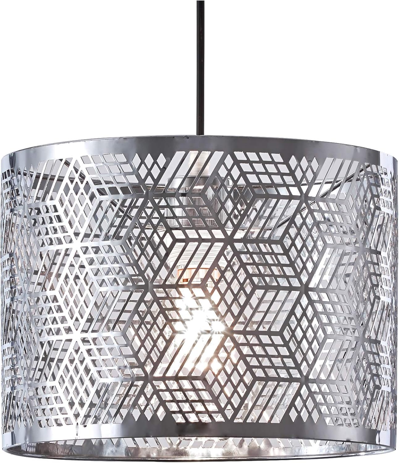 Innoteck Modern Decorative Cube-Pattern Chrome Metal Drum Shade, Multi-Functions for Desk, Floor Lamp & Ceiling Pendant