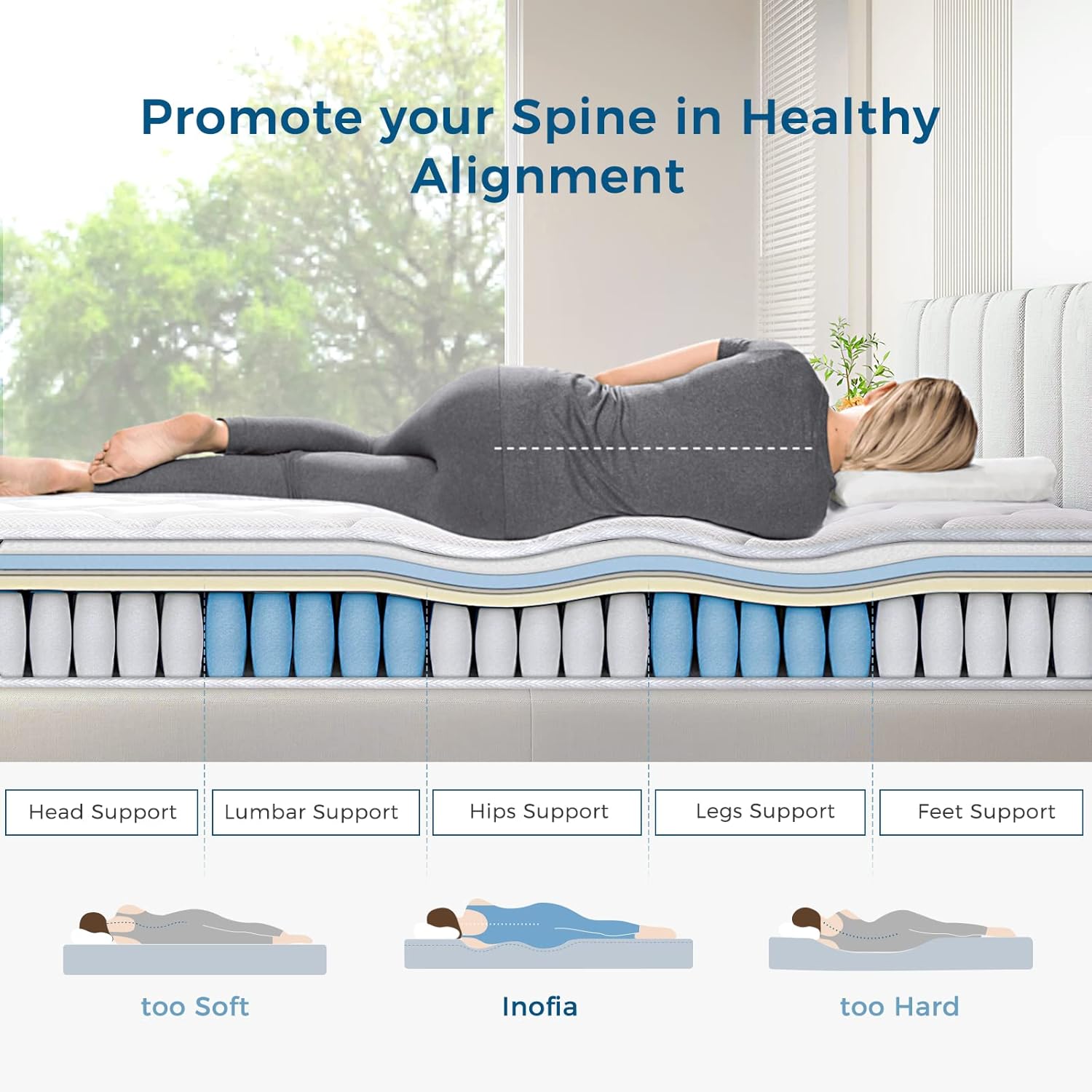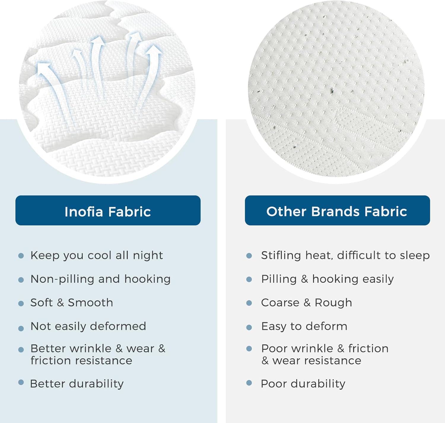 💤𝑨𝒃𝒐𝒖𝒕 𝑰𝒏𝒐𝒇𝒊𝒂 𝑪𝑶𝑶𝑳𝑴𝑨𝑿 𝑴𝒂𝒕𝒕𝒓𝒆𝒔𝒔:Inofia’s new collection of multifunctional hybrid mattresses has passed the rigorous “rollator” test of ASTM F1566, which includes rolling a 240-pound weight over our mattresses 100,000 times. This comprehensive test covers various performance indicators such as pressure relief, heat absorption, skin-friendly, anti-pilling, durable, and shock absorption. Medium firmness mattresses are favored by 80% of customers.