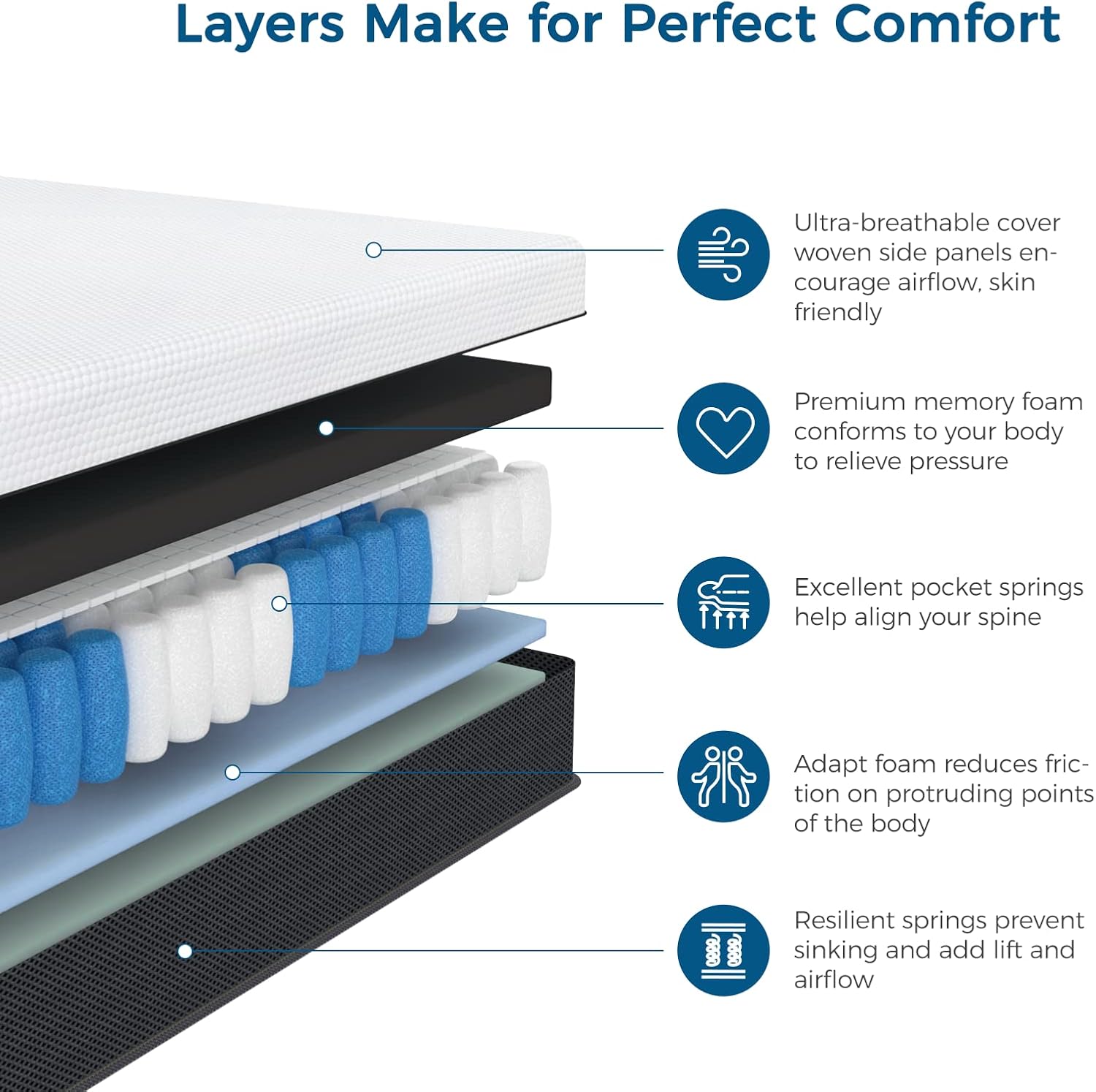 🌀Extraordinary Pocket Coil Technology–Offers good spinal support for everyone, provides the greatest durability while delivering pressure relief, reduces motion transfer for undisturbed rest. Unique Zoned Coil Support adapts and supports each unique body greatly. Adapts to anybody for the perfect level of support, gets up without any pain.