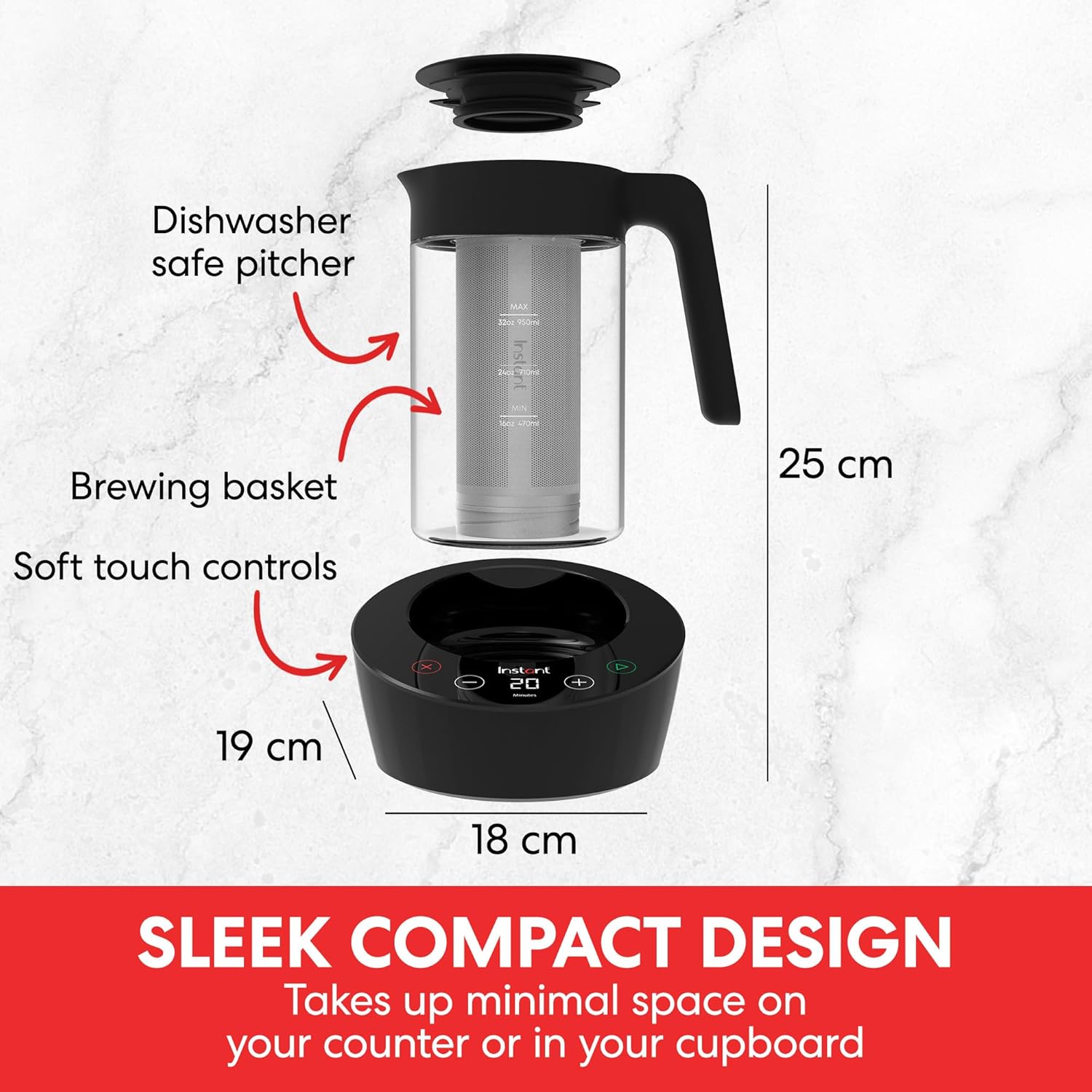 Instant Cold Brewer Coffee and Iced Tea Maker Digital One Touch Cold Cold Coffee Machine, Ready in 5 minutes: Perfect for Cold Brew Coffee, Iced Tea, Chai Lattes, Bubble Tea – 950ml Glass Pitcher