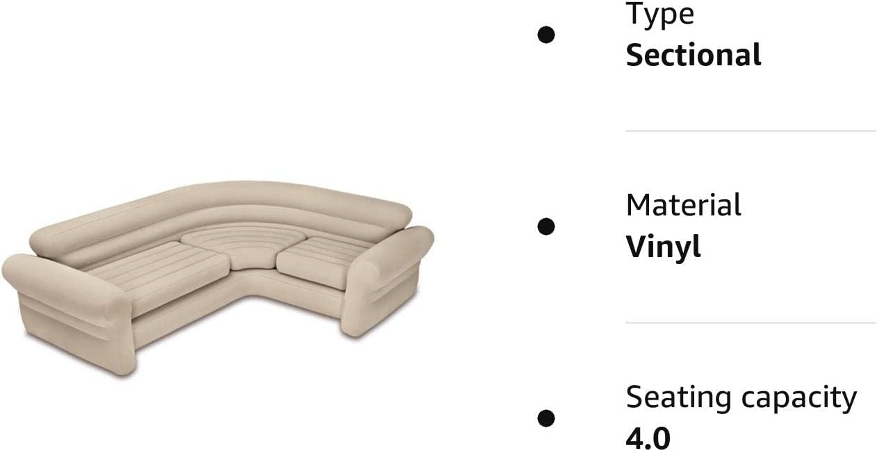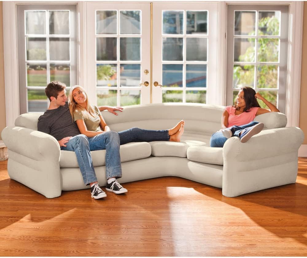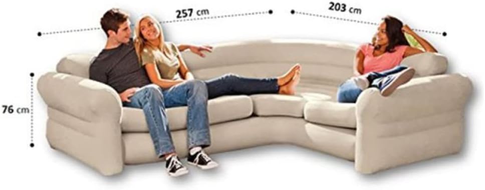 Intex Inflatable waterproof flocked top surface Corner Living Room Air Mattress, Sectional Sofa Couch for any rec room, game room, or dorm room 257 x 203 x 76 CM – Beige