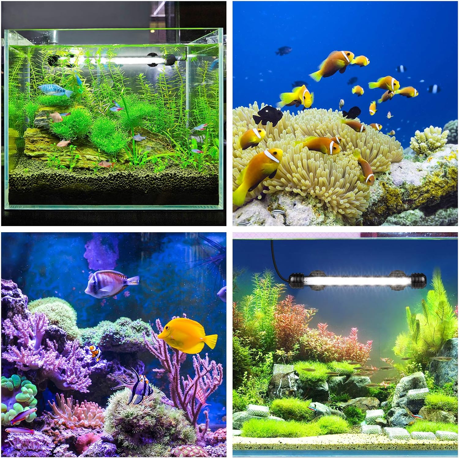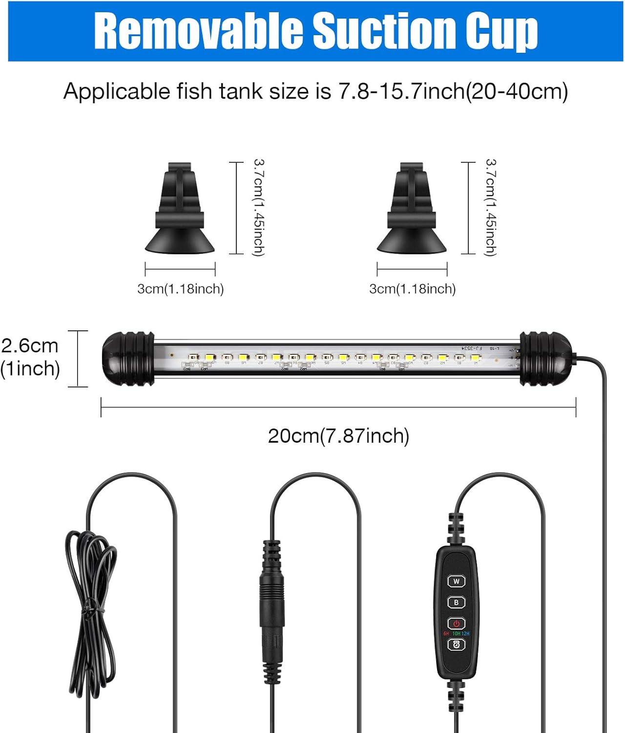 IREENUO Aquarium Light, Submersible Fish Tank light with Auto on/off Timer, Blue and White Color Changing Underwater LED lighting for 20-40 cm Tanks