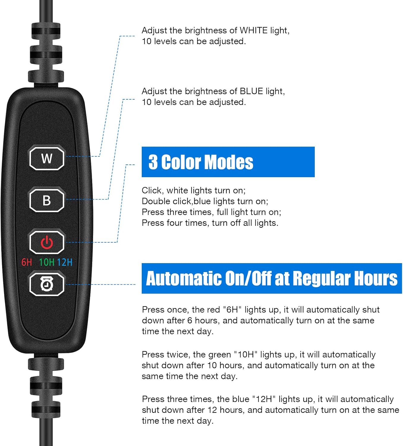 【Auto On/Off Timer】Equipped with convenient one-button switch since remote is easy to lose and insensitive, it can automatically turn on the lights regularly to 6h, 10h or 12h. No need to buy an extra timer.