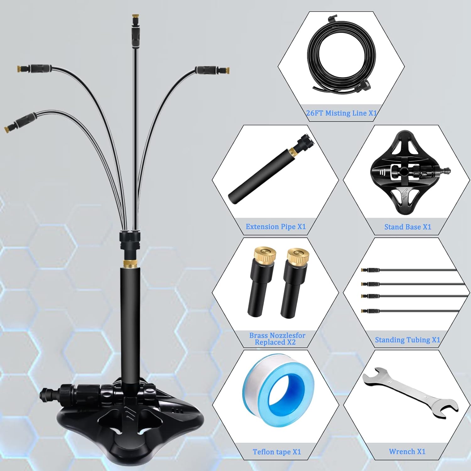 High Quality: This stand misters comes with a stable base and leak-proof thread, upgraded brass nozzles which are no leaking and have more smooth spray, good sealing tubing connector.